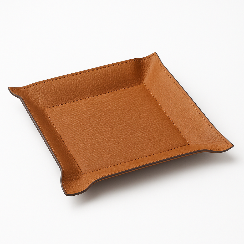 Giobagnara Vassoio Portaoggetti Square Jack Valet in Pelle Siena