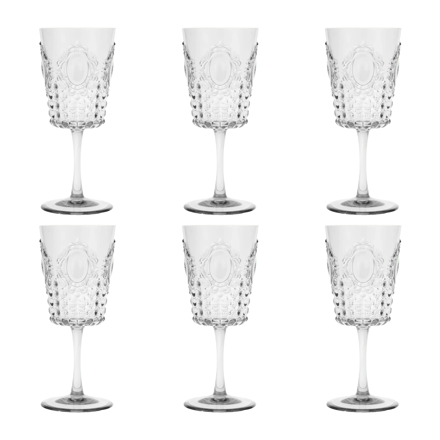 Il set di 6 calici da vino Baroque & Rock di Baci Milano unisce l’opulenza delle forme barocche con la funzionalità di un design contemporaneo.