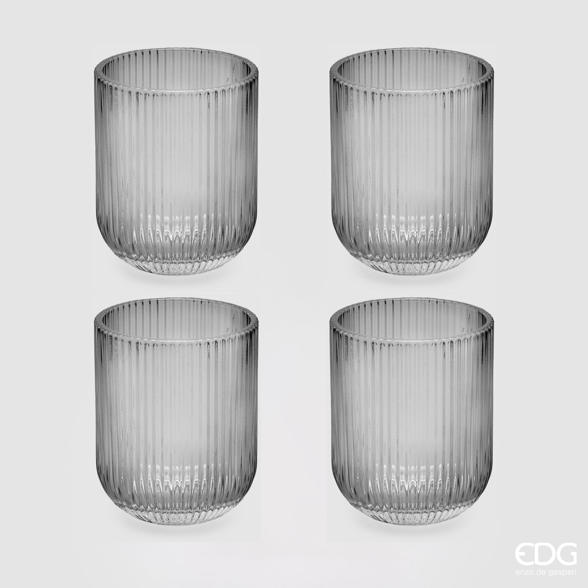 EDG Enzo De Gasperi Offerta Set 4 Bicchieri Tumbler Acqua Righe H9 D7 cm Grigio Fumè