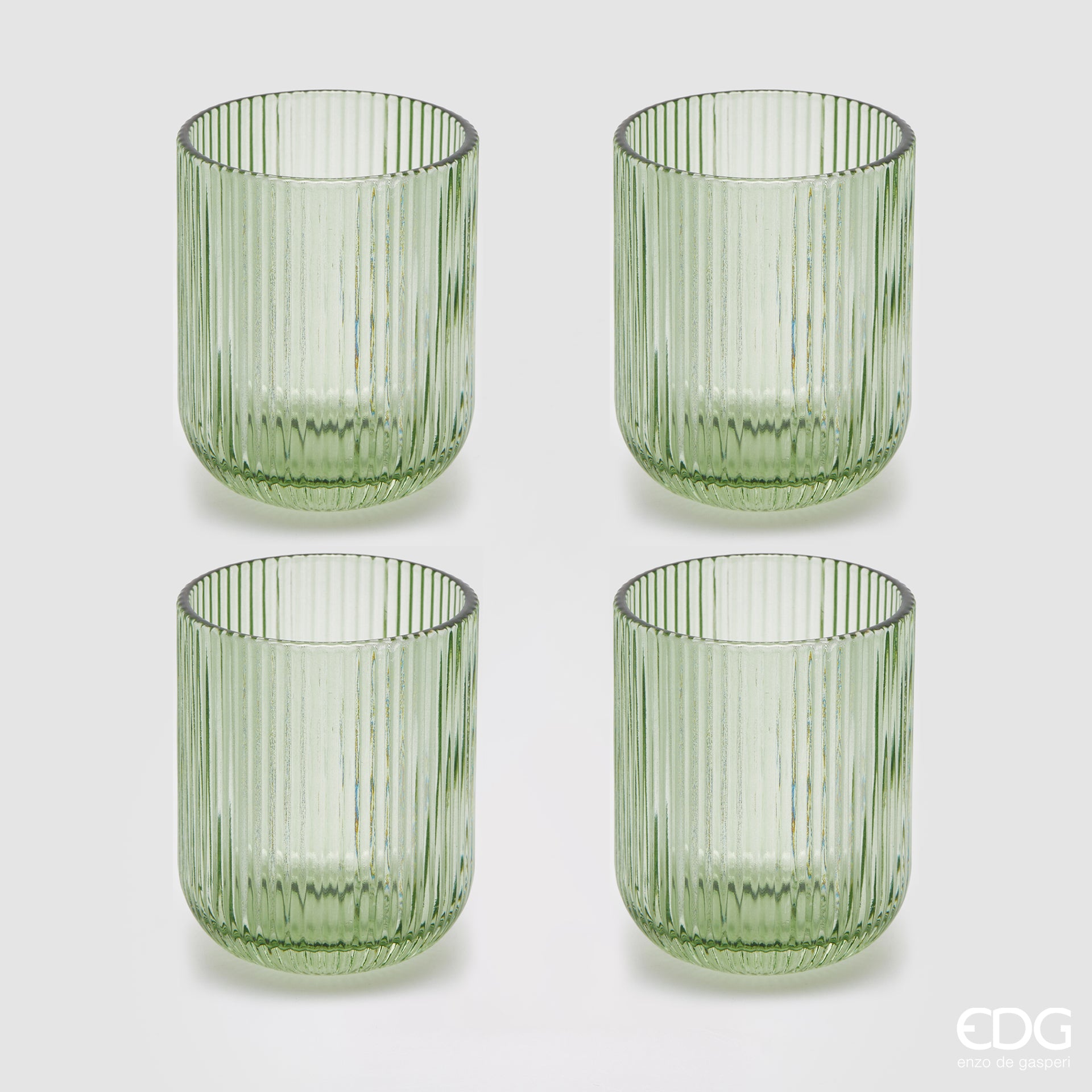 EDG Enzo De Gasperi Offerta Set 4 Bicchieri Tumbler Acqua Righe H9 D7 cm Verde Oliva