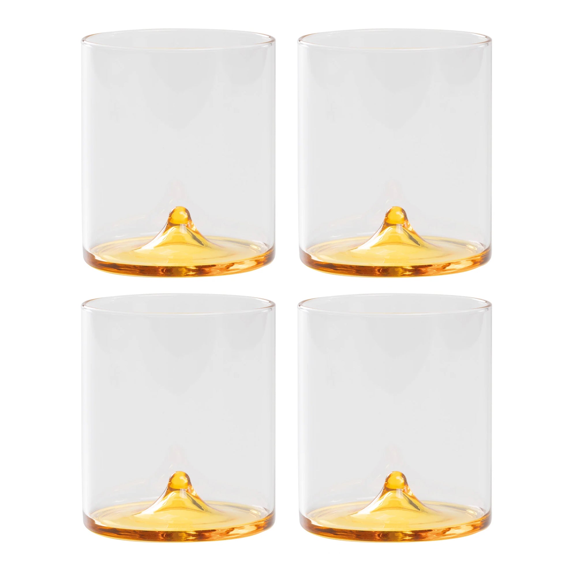 Essenziale, moderno e dal fascino naturale: il set di 4 tumbler Discobolo di Zafferano conquista per il suo design puro e raffinato. Realizzati in vetro soffiato color giallo oro, questi bicchieri si distinguono per la particolare bolla alla base, dettaglio iconico che aggiunge luce e carattere alla tavola.