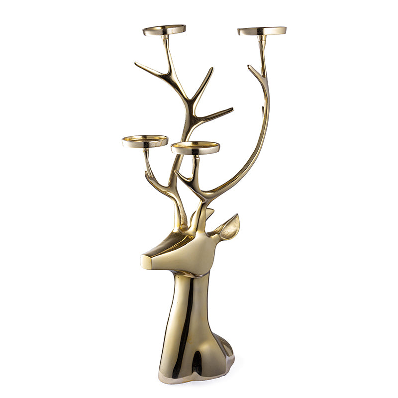 Portacandela Andrea Bizzotto Glower in finitura oro, raffigurante la testa di una renna, Con ben quattro Portacendele, realizzato in alluminio di alta qualità.