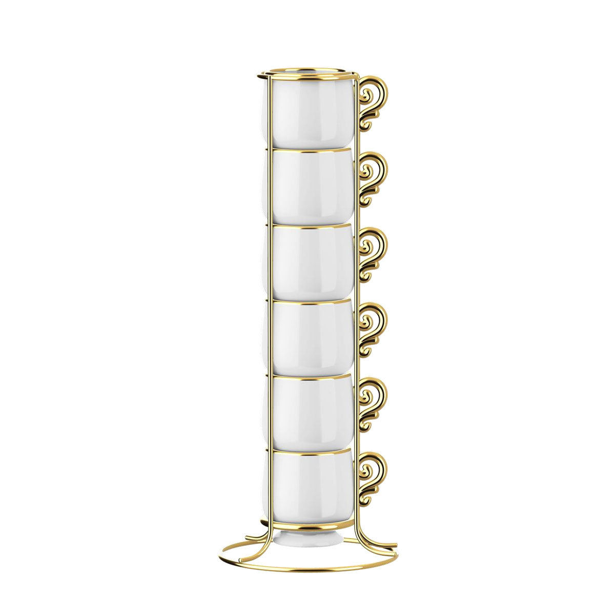 Bialetti Set 6 Tazzine Natalizie Impilabili Pure Gold in Porcellana con Supporto