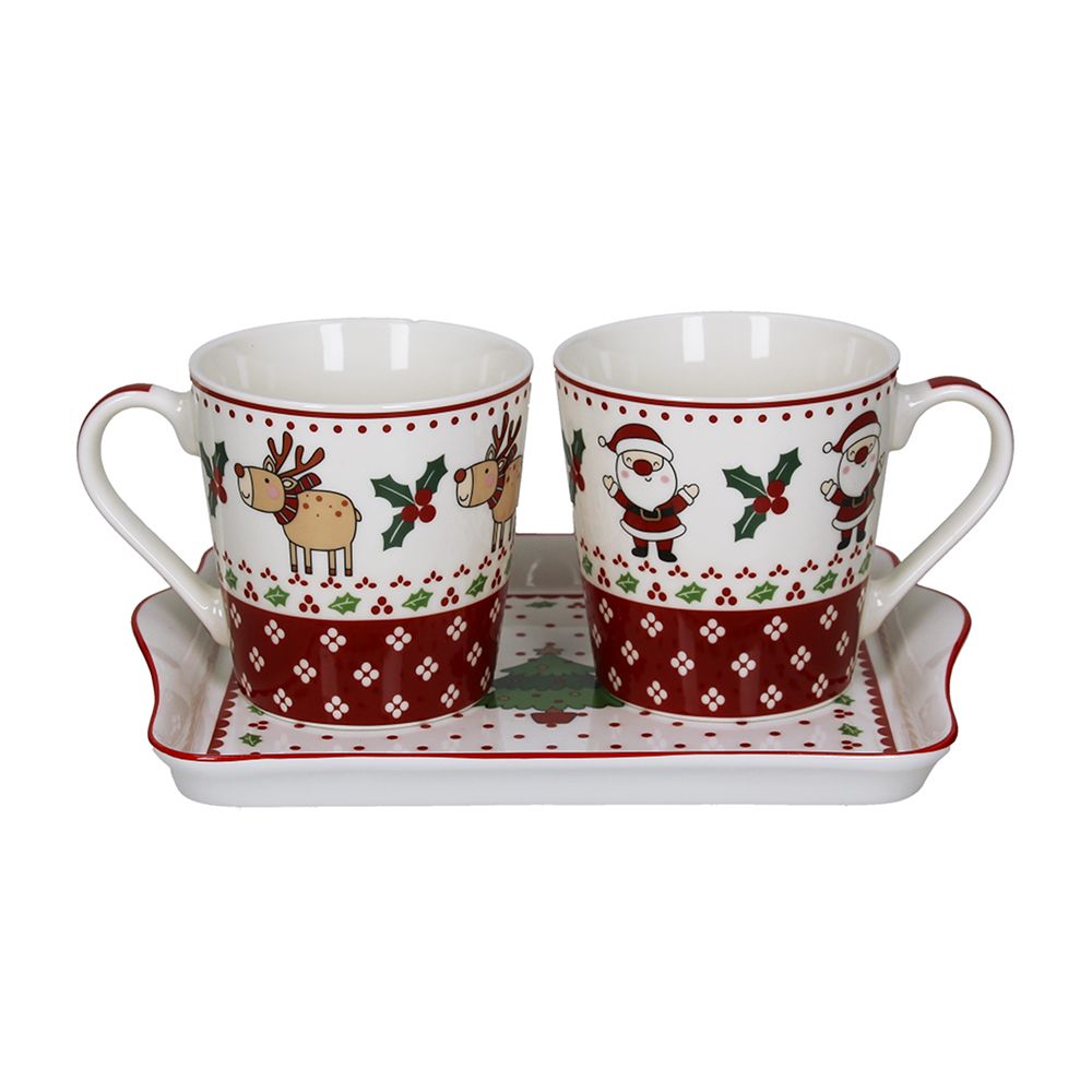 Tognana Porcellane Set 2 Tazze Natalizie Colazione con Vassoio 300 ml