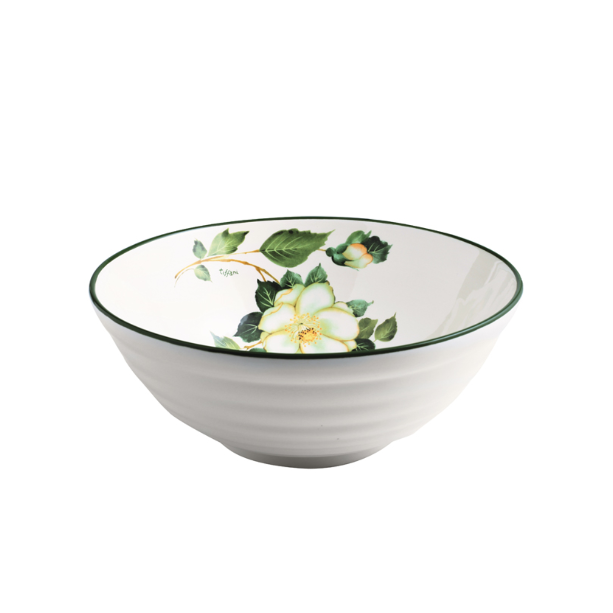 L’insalatiera Country Camelia di Love Tiffani, con un diametro di 31 cm, è l’accessorio perfetto per portare in tavola un tocco di eleganza floreale e calore rustico. Realizzata in ceramica decorata, presenta un delicato motivo di camelie rosa su fondo chiaro, ispirato al fascino delle tavole di campagna dal gusto romantico e raffinato.