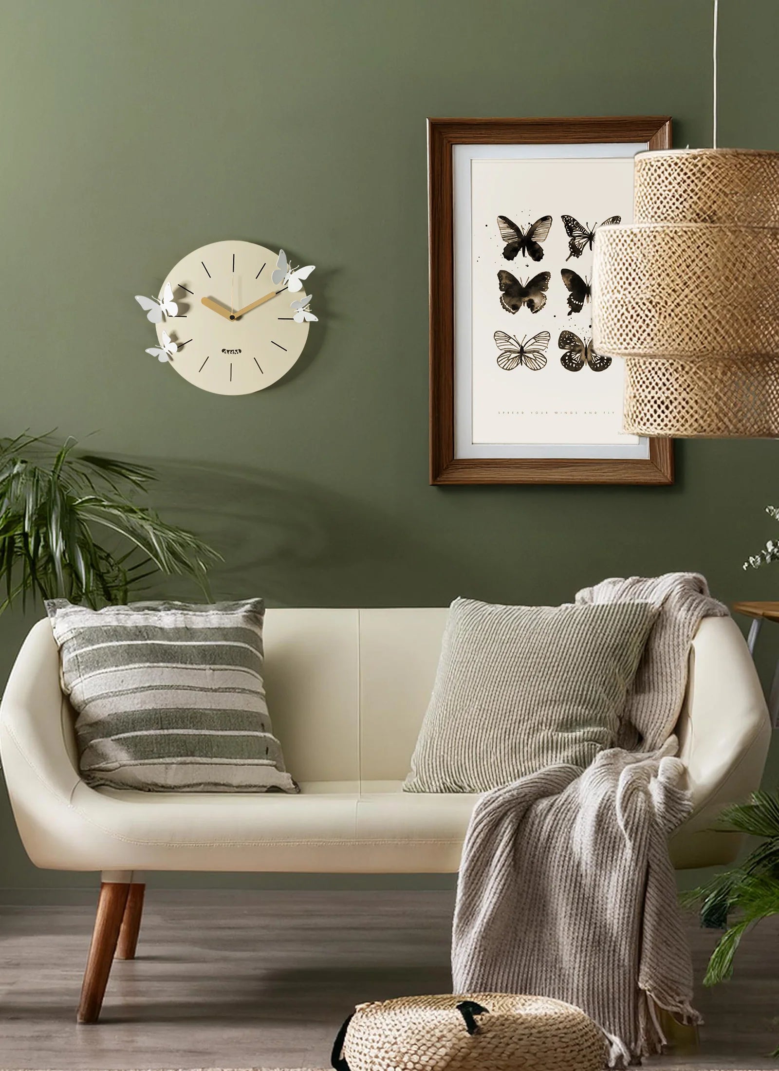 L’orologio da parete Battito D’Ali di Arti & Mestieri è un raffinato oggetto di design che coniuga funzionalità e poesia visiva. Con un diametro di 30 cm, questo modello compatto ma scenografico rappresenta una perfetta sintesi tra leggerezza formale e qualità artigianale.
