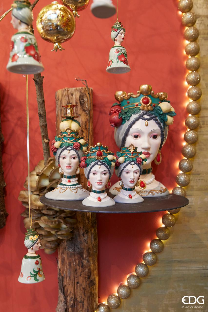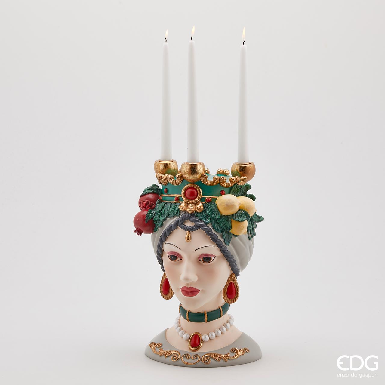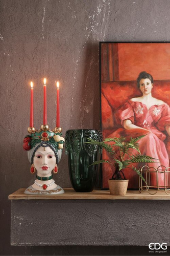 Il portacandele Testa di Moro Sicily di Enzo De Gasperi, è qui proposto nella sua versione femminile, color verde. Decisamente peculiare, sa arredare con quel tocco glam chic tipico dei complementi d'arredo EDG.