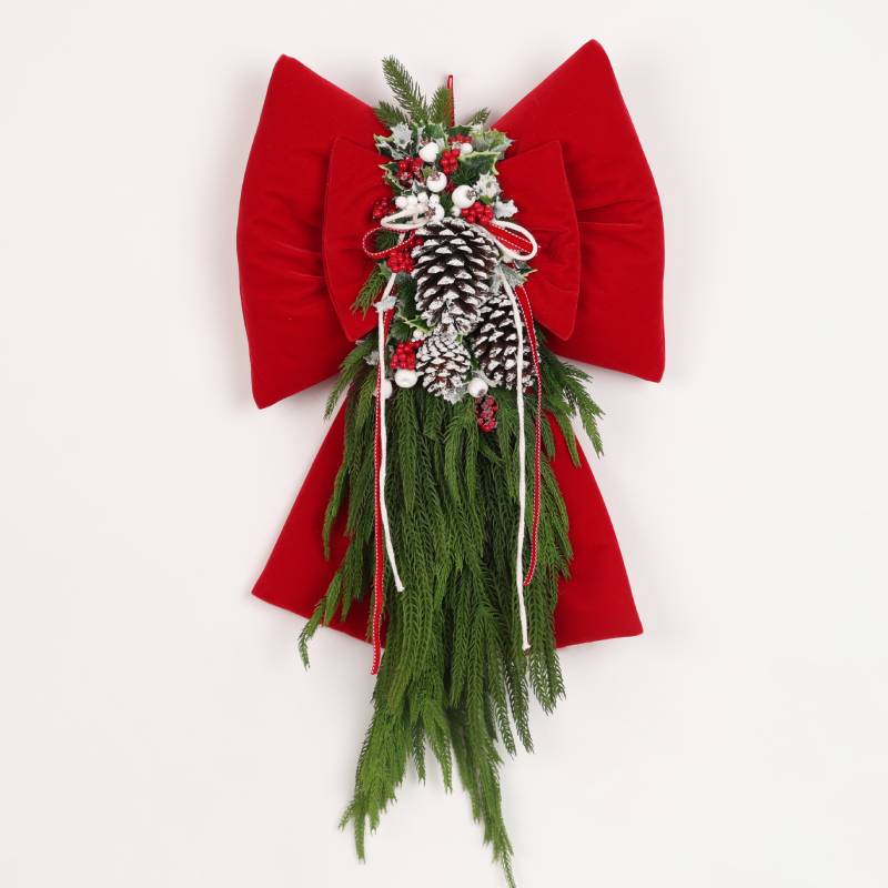 • Doppio fiocco imbottito con pino cadente e pigne – H75 cm