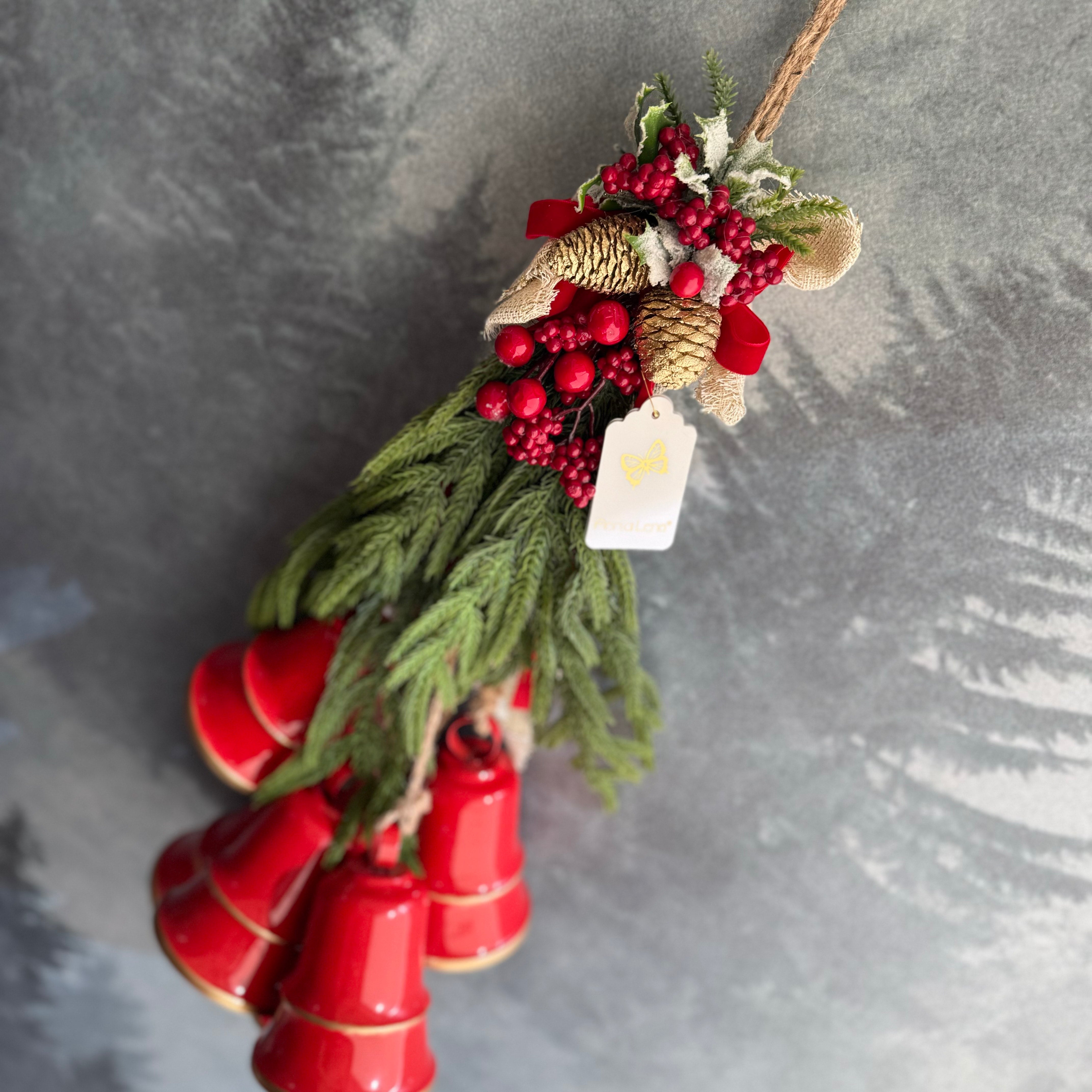 Porta la magia del Natale nella tua casa con il Fuoriporta con Campanacci e Decori Natalizi firmato Fiori di Lena. Un’elegante decorazione artigianale realizzata a mano in Italia, perfetta per impreziosire l’ingresso durante le festività.