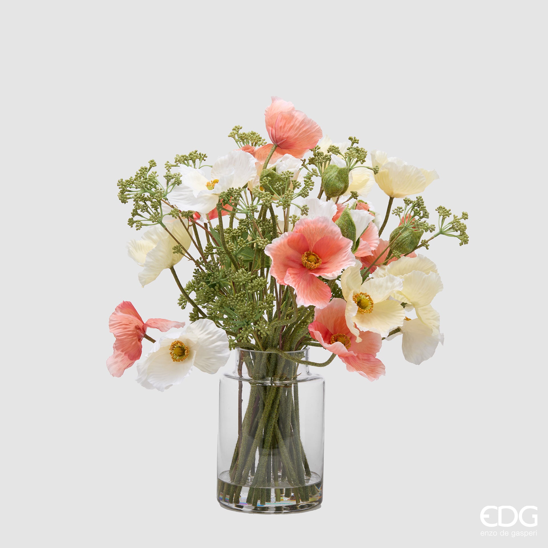 EDG Enzo De Gasperi Papavero Composizione con Foglie H53 cm Rosa