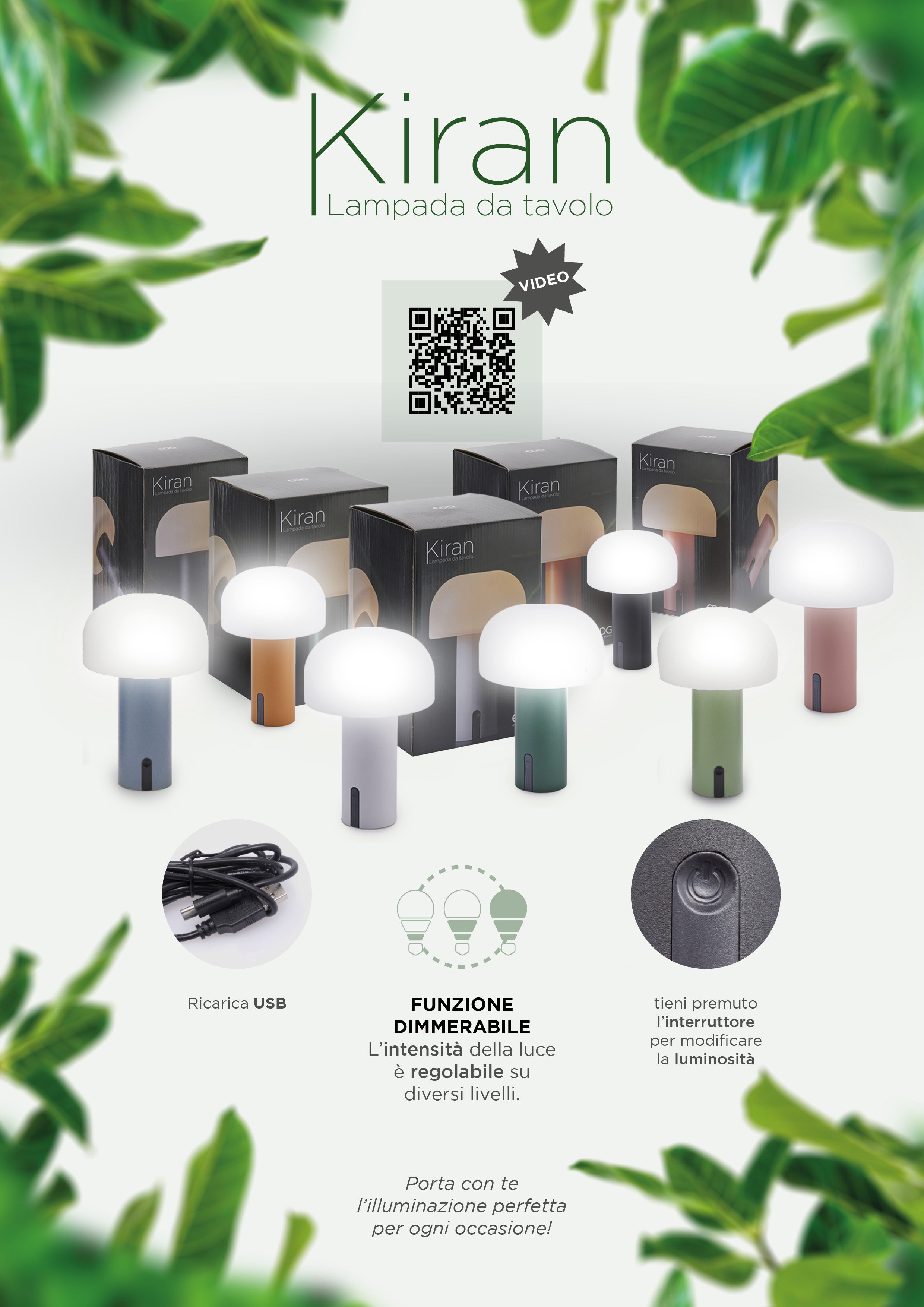 La nuova lampada Kiran della collezione di EDG Enzo De Gasperi combina design raffinato e funzionalità avanzate, rendendola la scelta ideale per ogni ambiente, interno ed esterno. Grazie alla sua impermeabilità IP44, è perfetta sia per il soggiorno che per illuminare un terrazzo o un giardino durante serate speciali. Con una potenza luminosa di 100 lumen, offre una luce chiara e confortevole.