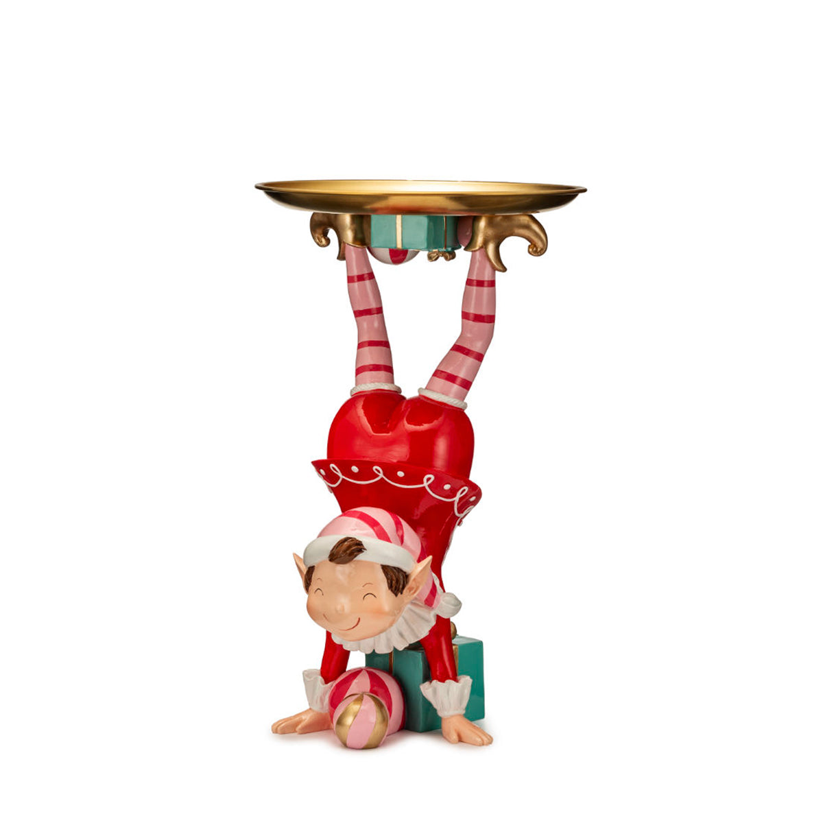 Curato nei minimi dettagli e dipinto a mano, l’elfo indossa il tradizionale abito natalizio ricco di colori e decorazioni dorate. Il vassoio integrato lo rende non solo una decorazione, ma anche un complemento funzionale per impreziosire la tavola o l’ingresso durante le feste.