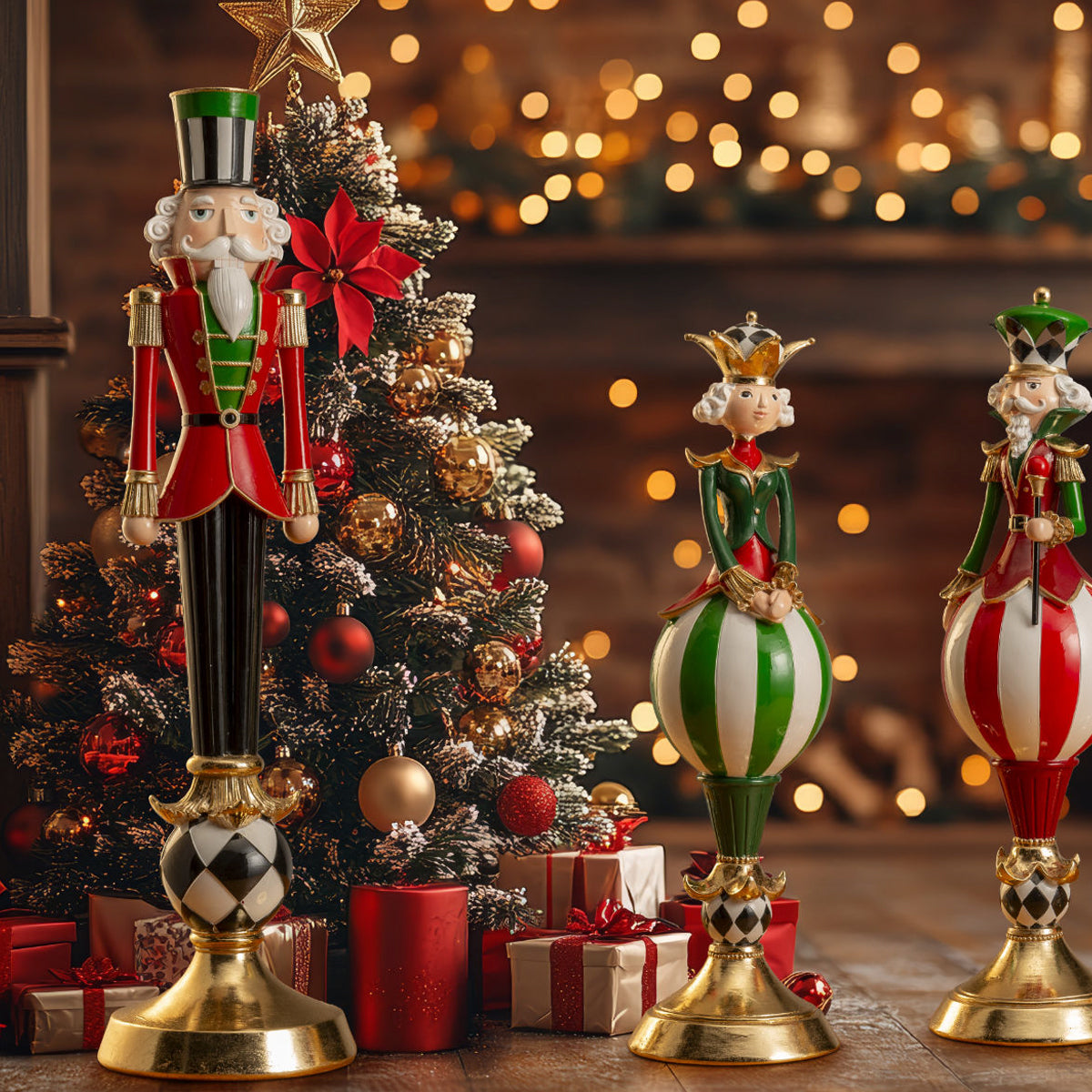 Maestoso e raffinato, il portacandela Soldatino Scacchi di Lamart è una decorazione che unisce l’eleganza del design classico al fascino del Natale. Realizzato in resina di alta qualità, con un’altezza di 60 cm, raffigura il celebre soldatino Schiaccianoci in una versione moderna con motivo a scacchi bianco e nero e preziosi dettagli dorati.