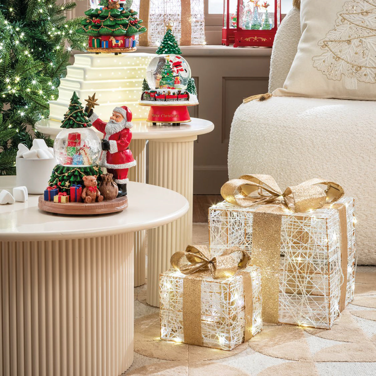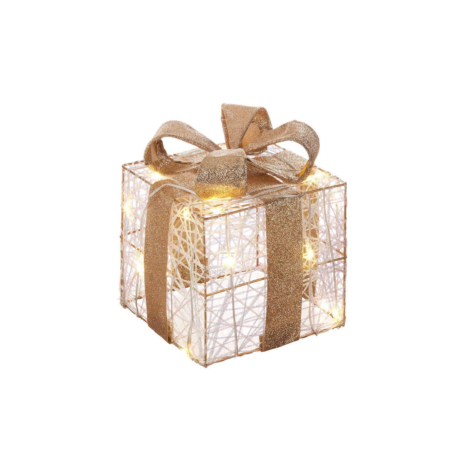 La decorazione Pacco Regalo con Led della collezione Doni Delle Stelle de L’Oca Nera è un addobbo natalizio elegante e luminoso che dona calore e magia agli ambienti. Realizzato con finiture raffinate e arricchito da luci a LED integrate, crea un’atmosfera accogliente perfetta per le feste.
