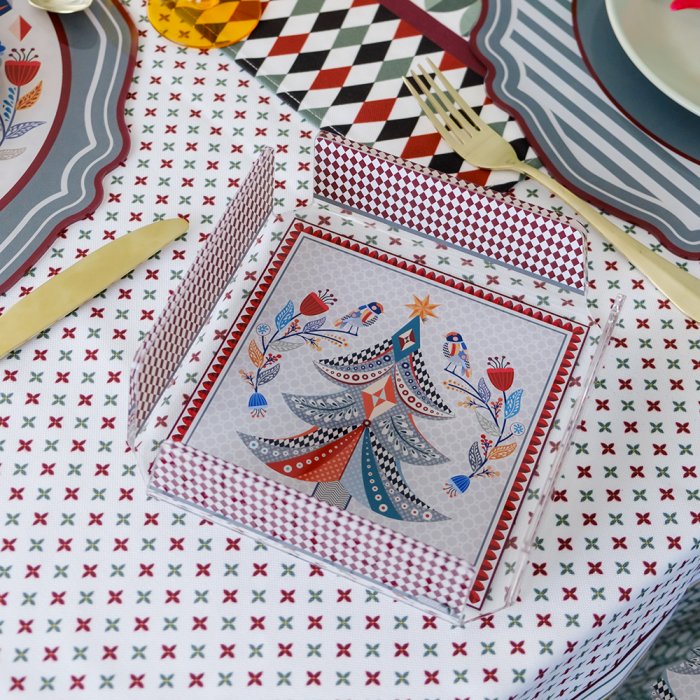 Aggiungi un tocco di creatività e armonia alla tua mise en place con il portatovaglioli natalizio Vesta, un accessorio originale e colorato, perfetto per completare la Christmas Collection con eleganza e personalità.