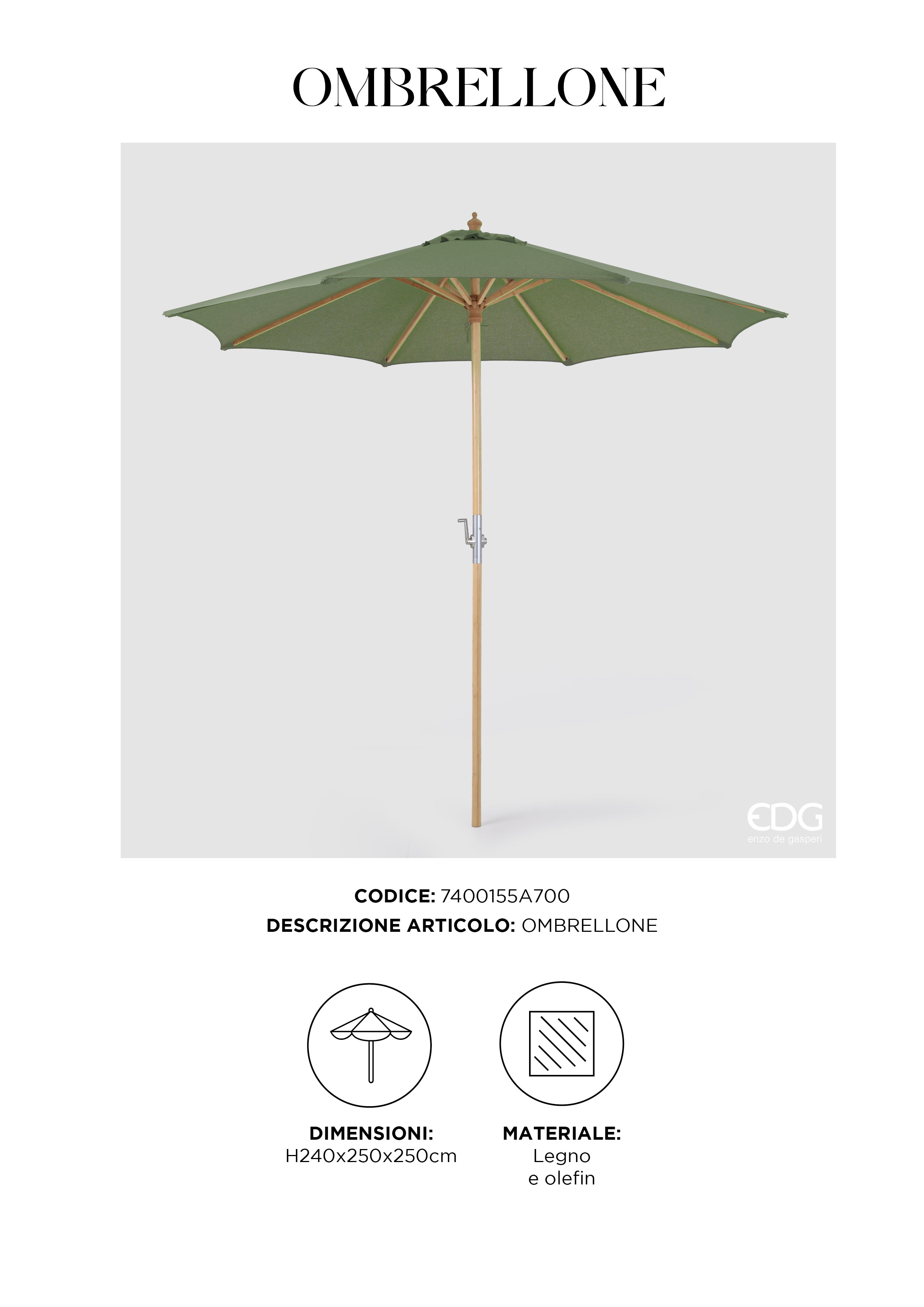 EDG Enzo de Gasperi Ombrellone da esterno Bamboo D250 cm Verde