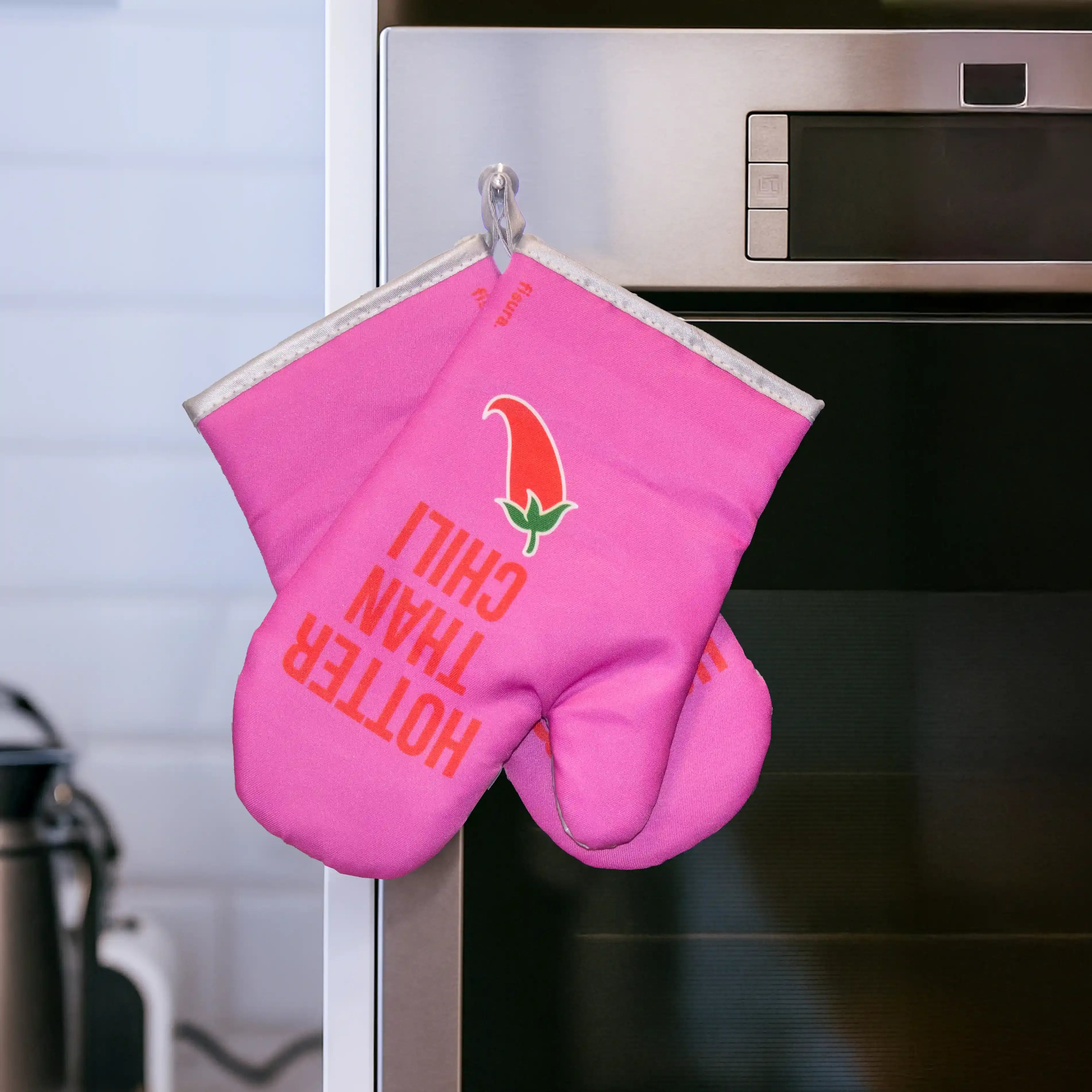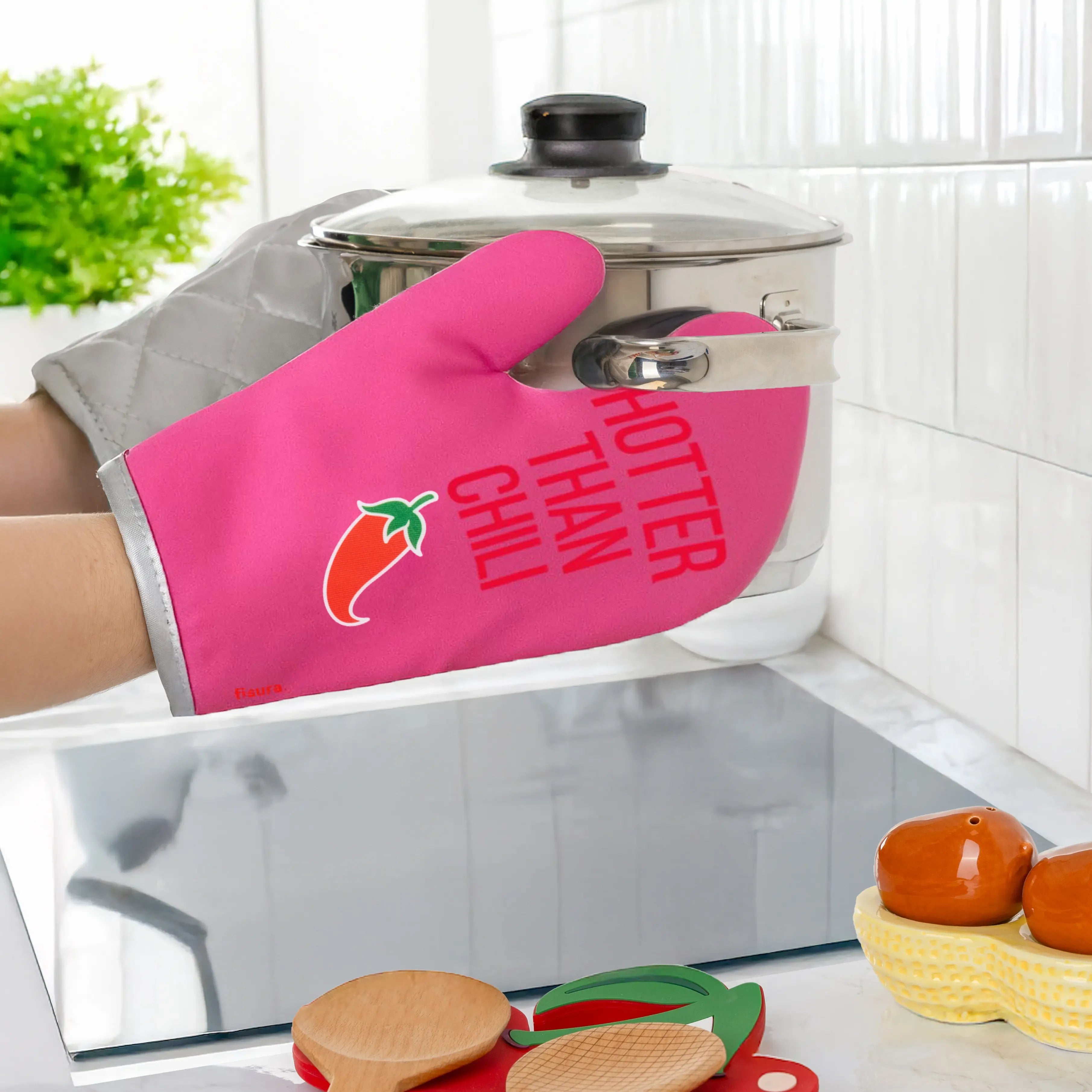 Il guanto da forno “Hotter Than Chili” di Fisura è l’accessorio ideale per aggiungere un tocco di ironia alla tua cucina senza rinunciare alla funzionalità.