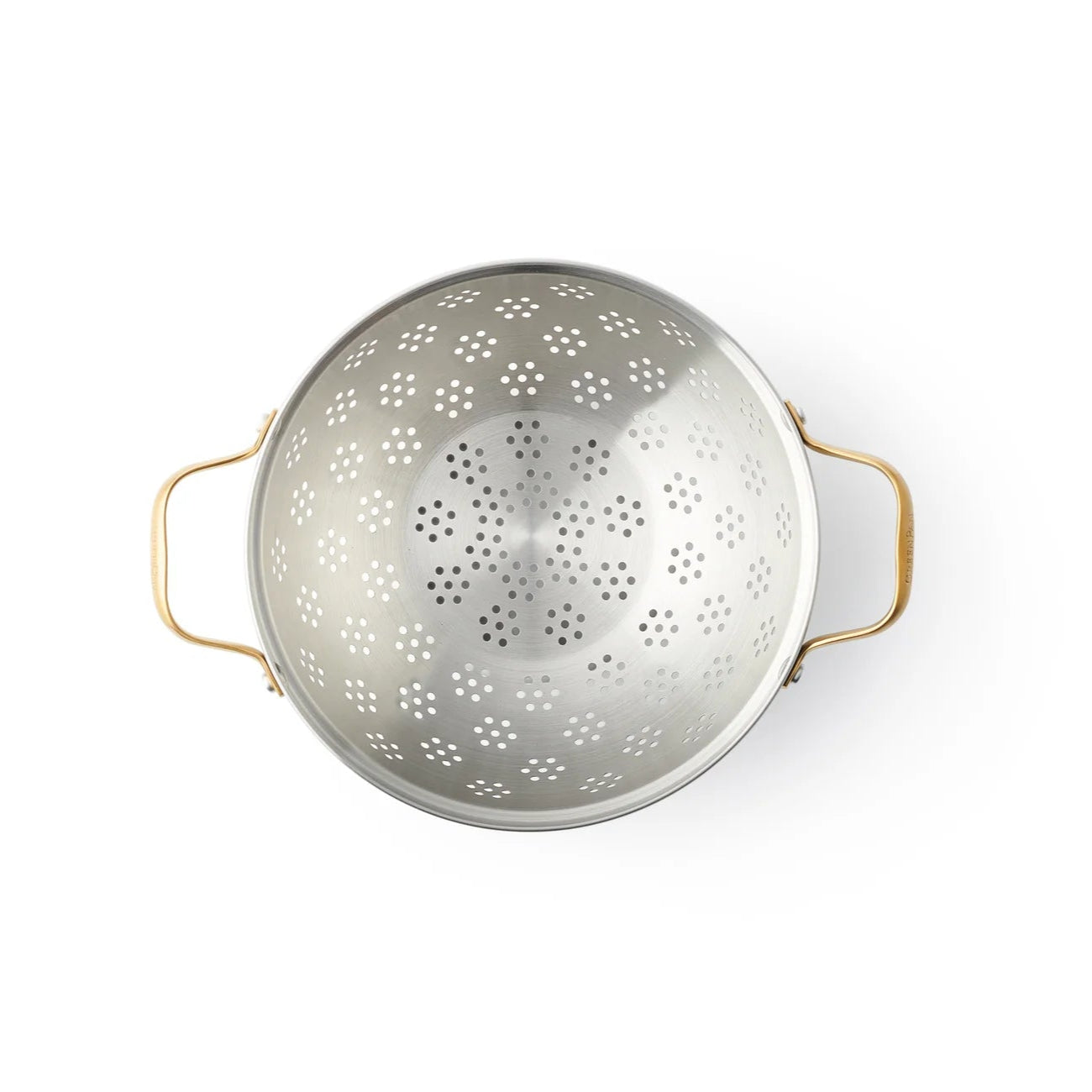Il rivestimento interno antiaderente in ceramica Thermolon™ Infinity, privo di PFAS, PFOA, piombo e cadmio, permette una cottura salutare, senza attaccare e facile da pulire. L’inserto scolapasta in acciaio inox consente di scolare direttamente pasta o verdure con praticità, mentre il design Sky Blue opaco dona un tocco raffinato alla tua cucina.