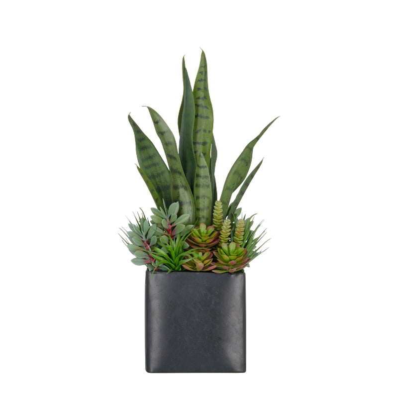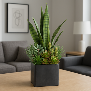 La composizione di piante grasse artificiali di Gasper, alta 55 cm, è la soluzione perfetta per portare un tocco di verde nella tua casa senza pensieri di manutenzione. Le piante, realistiche e curate nei dettagli, sono inserite in un elegante vaso in metallo dallo stile moderno e industriale (dimensioni 16x17 cm), ideale per arricchire ambienti living, ingressi o spazi di lavoro.