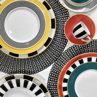Il servizio tavola Royal di Fade Maison, composto da 18 pezzi in porcellana, è pensato per chi ama l’eleganza senza tempo. I piatti presentano un decoro raffinato con motivi dorati su fondo bianco, che richiama atmosfere classiche e sofisticate, perfette per cene formali, occasioni speciali o una tavola curata ogni giorno.