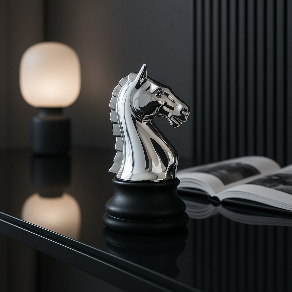 Simbolo di strategia e dinamismo, questo oggetto è perfetto per chi desidera aggiungere un tocco di personalità sofisticata e cultura visiva alla casa o all’ufficio. Ottimo anche come idea regalo per amanti degli scacchi, dell’arredo moderno o degli oggetti simbolici.