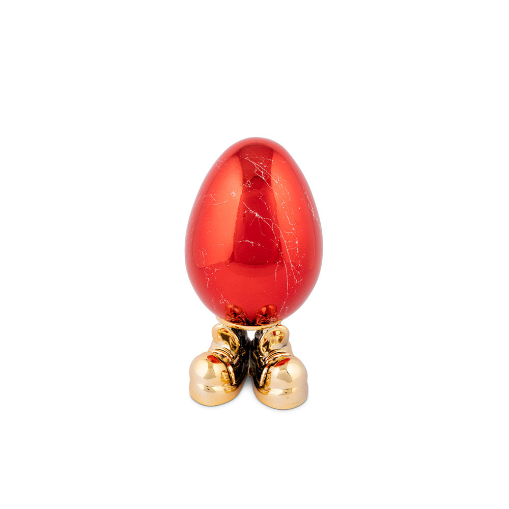 Un oggetto di design sorprendente e ironico: l’Uovo con Piedi di Mia Design, alto 28 cm, è una decorazione scultorea che unisce linee essenziali e dettagli pop. Realizzato in resina effetto marmo specchiato, con piedi dorati in stile cartoon, è perfetto per dare un tocco eclettico e originale alla tua casa o al tuo ufficio.