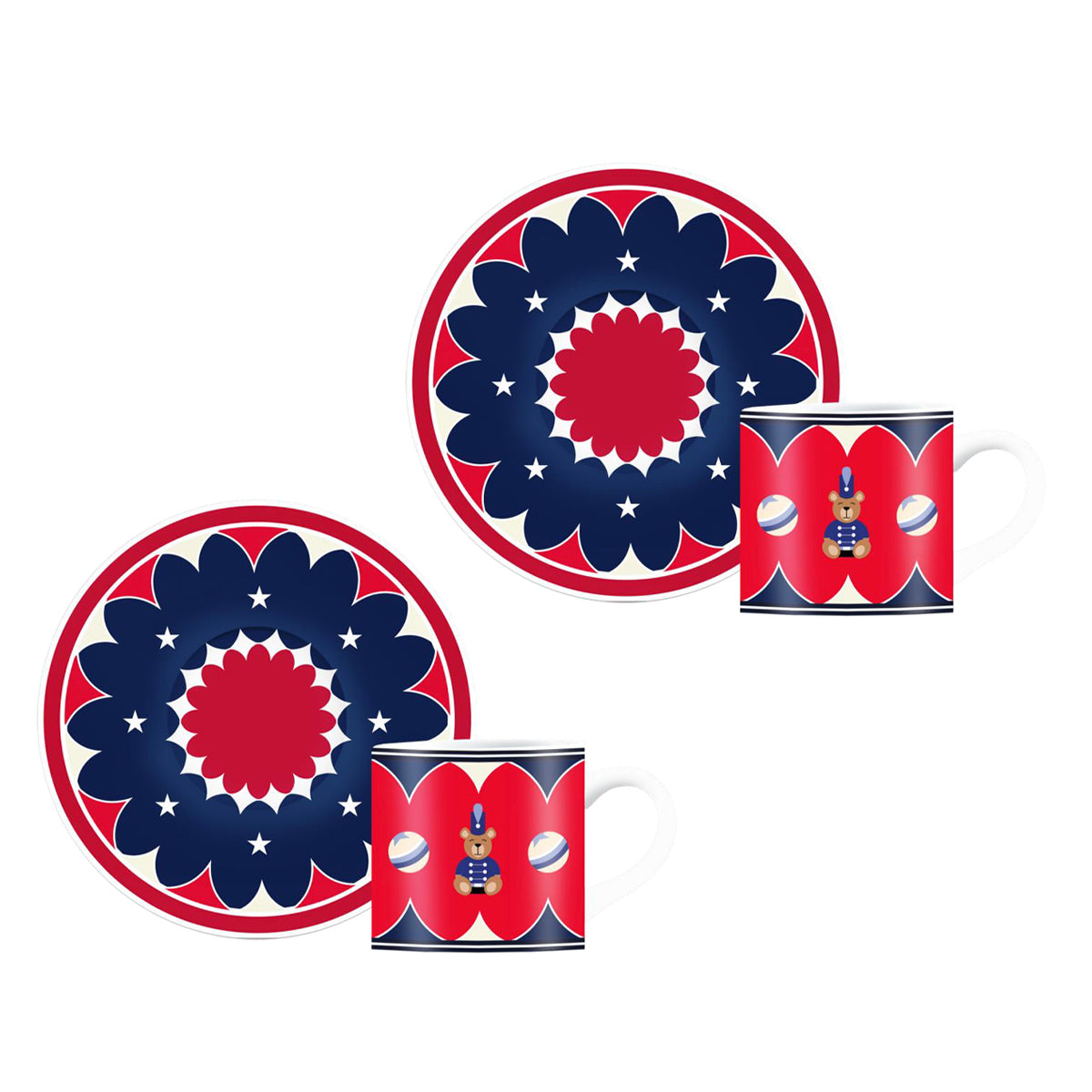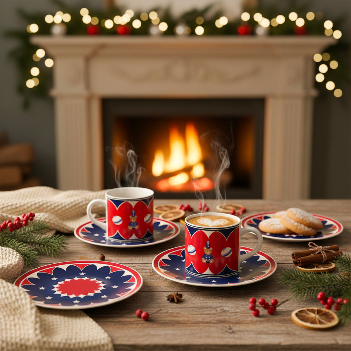 Bialetti Set 2 Tazzine da Caffè Natalizie con Piattino in Porcellana