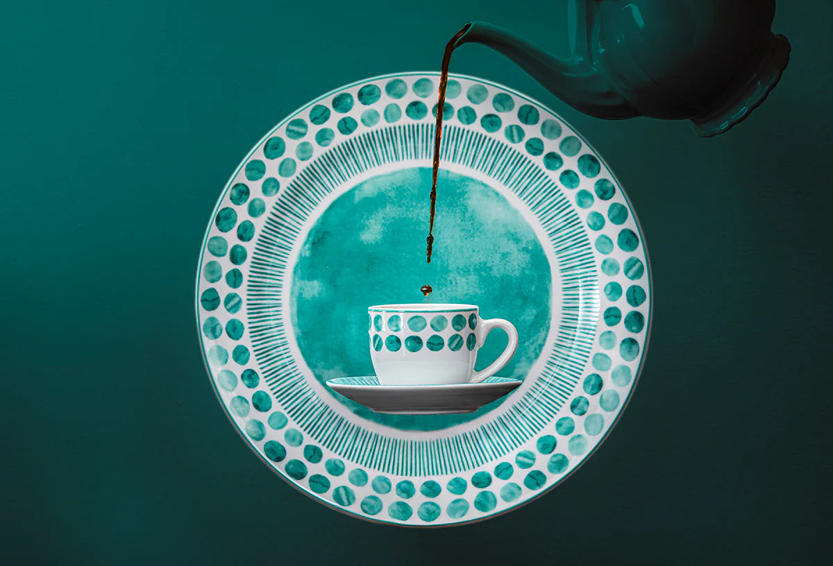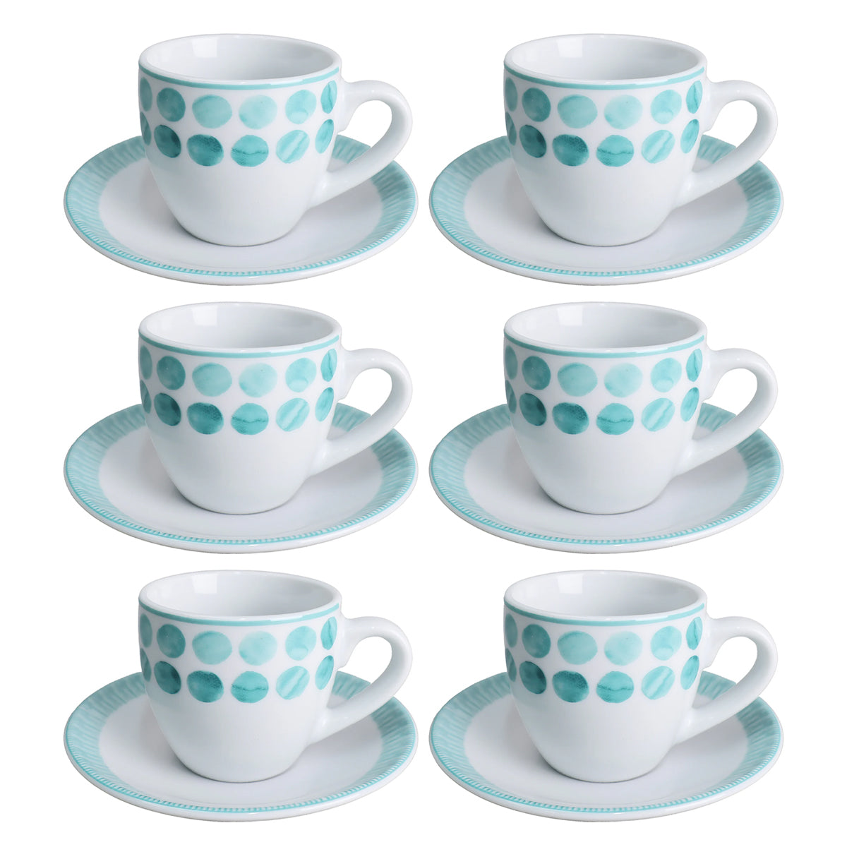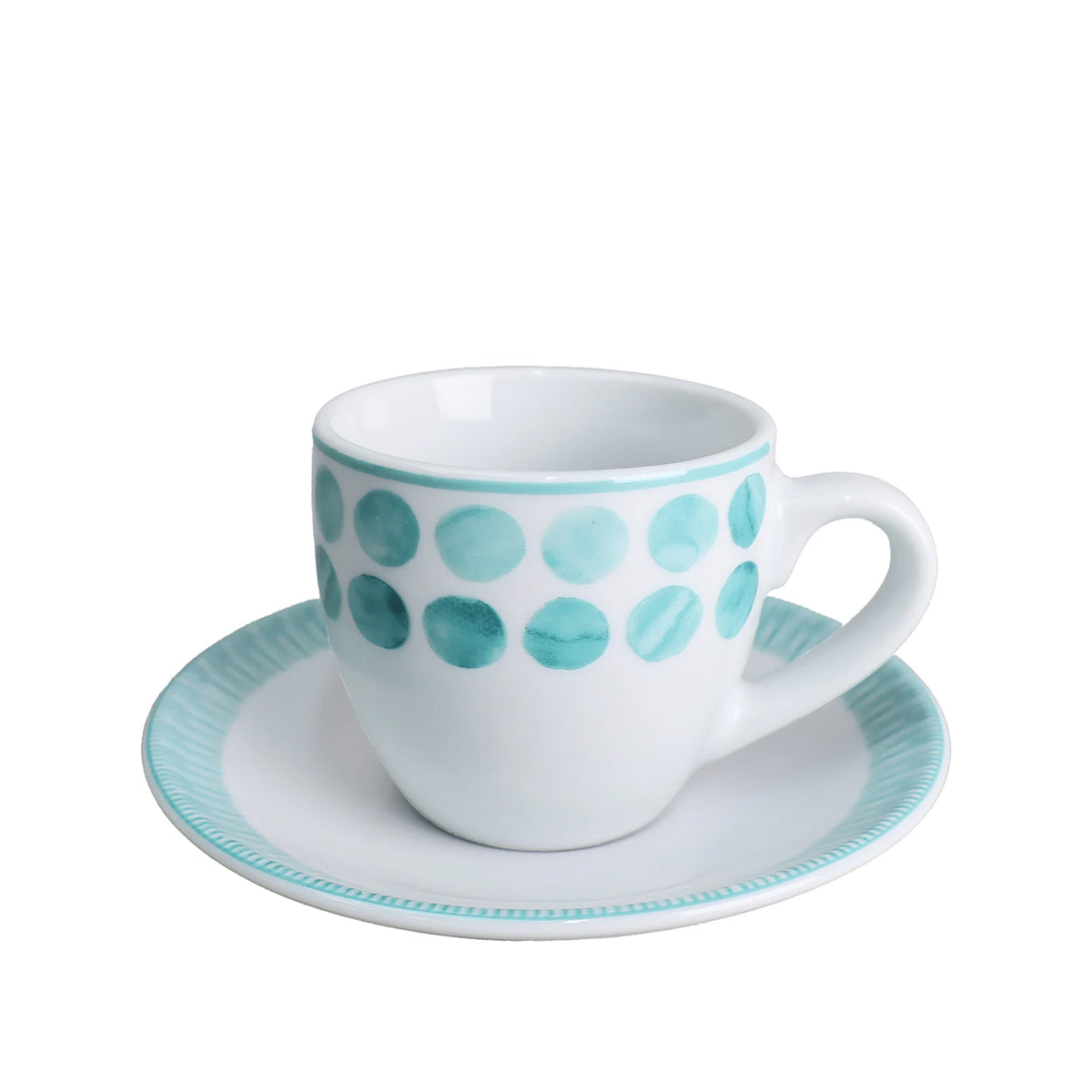 Villa Altachiara Set 6 Tazzine da Caffè Tabata con Piattino in Porcellana Verde Mare