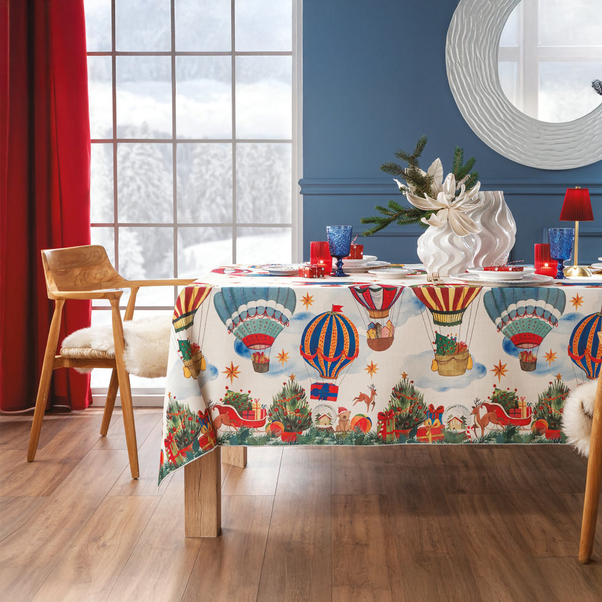 L'Oca Nera Tovaglia Natalizia Mongolfiere Antimacchia 155x230 cm