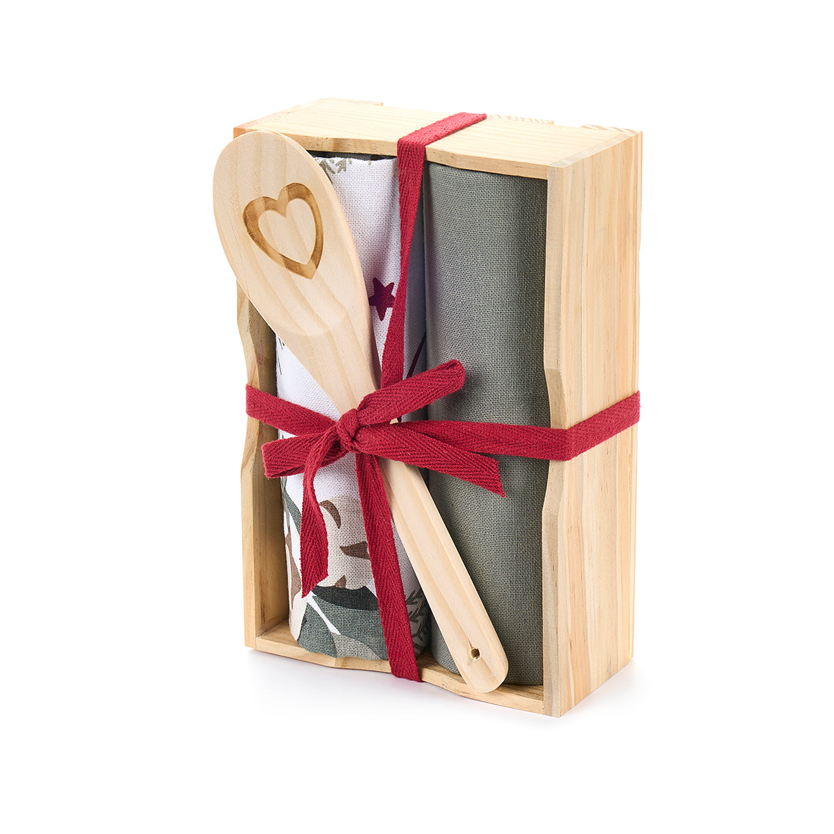 Delizioso e pratico, il set da 2 strofinacci Christmas is Coming di Nuvole di Stoffa porta nella cucina tutto il calore e la magia del Natale. Realizzati in morbido cotone, presentano fantasie festive dai toni caldi e naturali, perfettamente abbinate al mestolo in legno incluso nel set, per un tocco rustico e autentico.