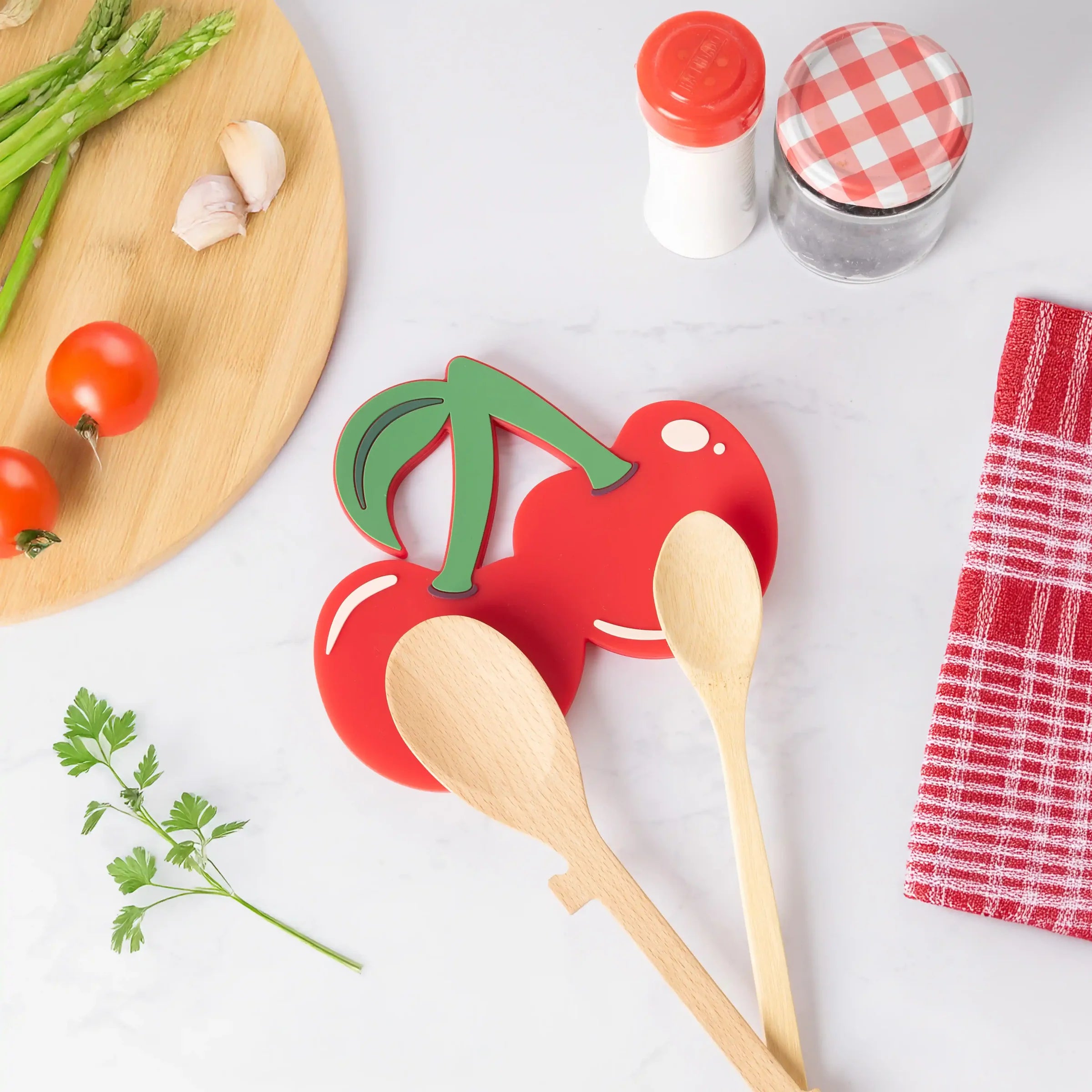 Il poggia mestolo Cherry di Fisura è un accessorio da cucina divertente e funzionale, pensato per chi ama i dettagli originali. Realizzato in silicone alimentare resistente al calore, protegge il piano di lavoro da sporco e schizzi mentre cucini.