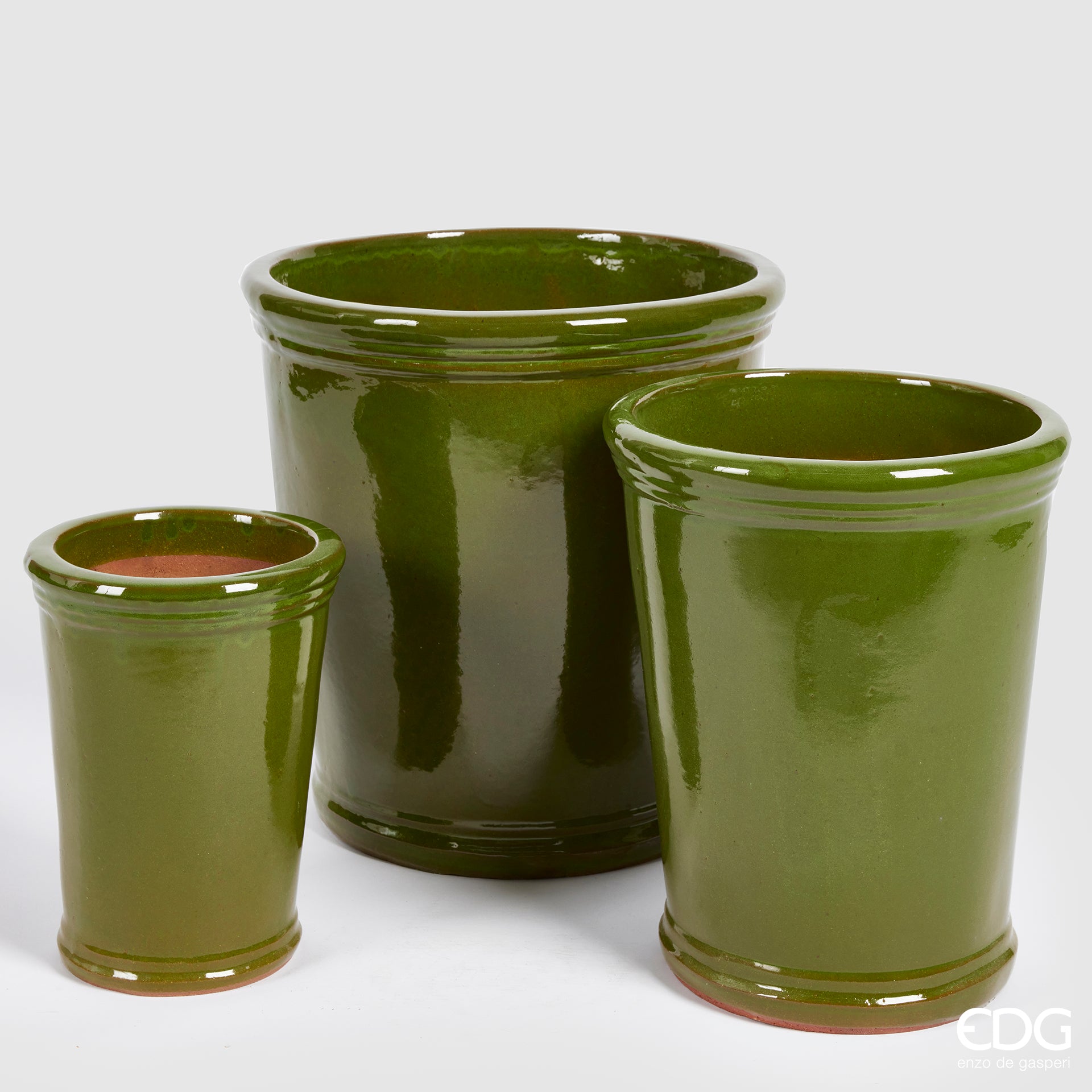 EDG Enzo De Gasperi Set 3 Vasi Glaze Svasati in Ceramica Verde