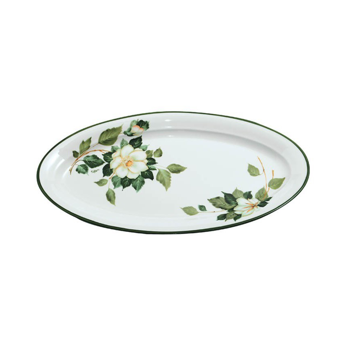 Il vassoio ovale Country Camelia di Love Tiffani, con un diametro di 31 cm, è l’elemento perfetto per servire con stile e delicatezza. Realizzato in ceramica decorata, è impreziosito da un elegante motivo di camelie rosa che richiama lo stile country chic, ideale per chi ama una tavola dal sapore caldo e familiare.