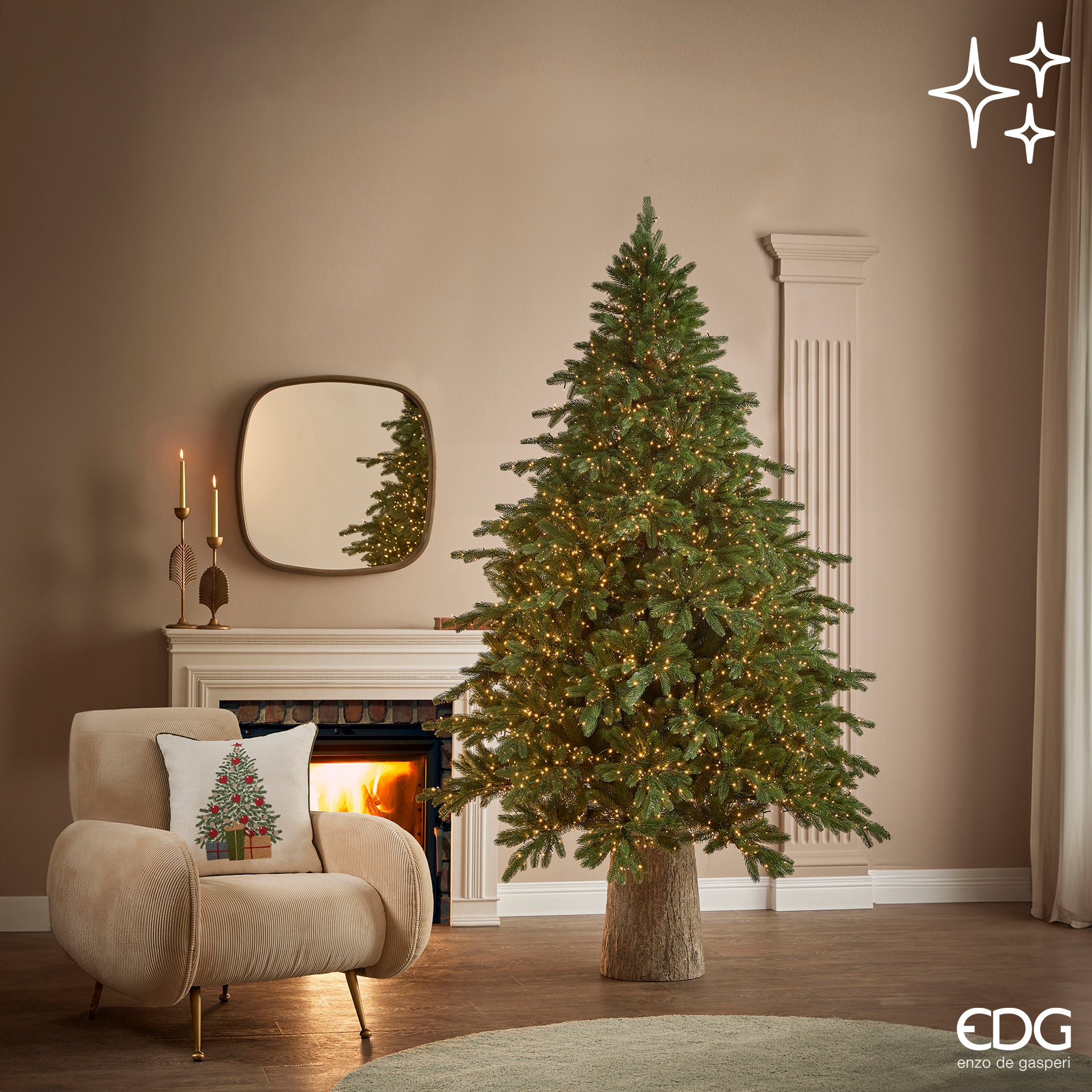 Die integrierte Beleuchtung mit 2500 MiniLEDs wertet den Baum mit einem gleichmäßigen und einhüllenden Licht auf. Mit der Fernbedienung können Sie Ihren bevorzugten Multieffekt wählen, die dimmbare Intensität einstellen und den 8h ON / 16h OFF Memory Timer aktivieren, der die letzte Einstellung speichert und den Baum jeden Tag zur gleichen Zeit einschaltet. Das 5 Meter lange Kabel bietet maximale Flexibilität bei der Positionierung; das 31V – 15W Netzteil garantiert einen niedrigen Verbrauch, und die CE-Zertifizierung gewährleistet die Einhaltung europäischer Normen. Mit der Schutzart IP44 ist er auch ideal für den Außenbereich geeignet, perfekt für Eingänge, Schaufenster, Veranden und Gärten, wobei die EDG-Eleganz stets erhalten bleibt.