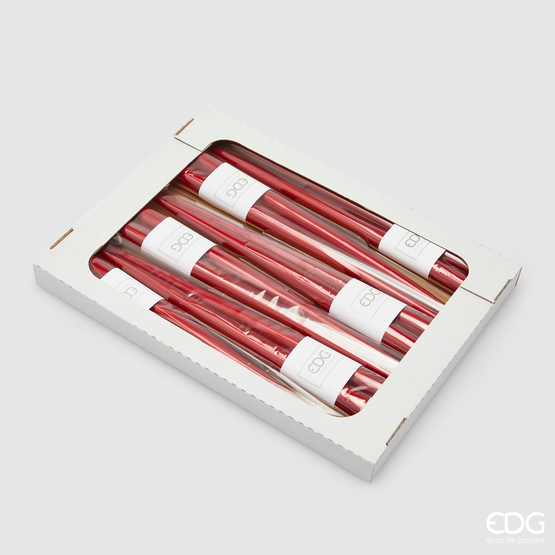 Set mit 2 dunkelroten Stielkerzen aus der neuen Weihnachtskollektion von EDG Enzo De Gasperi.