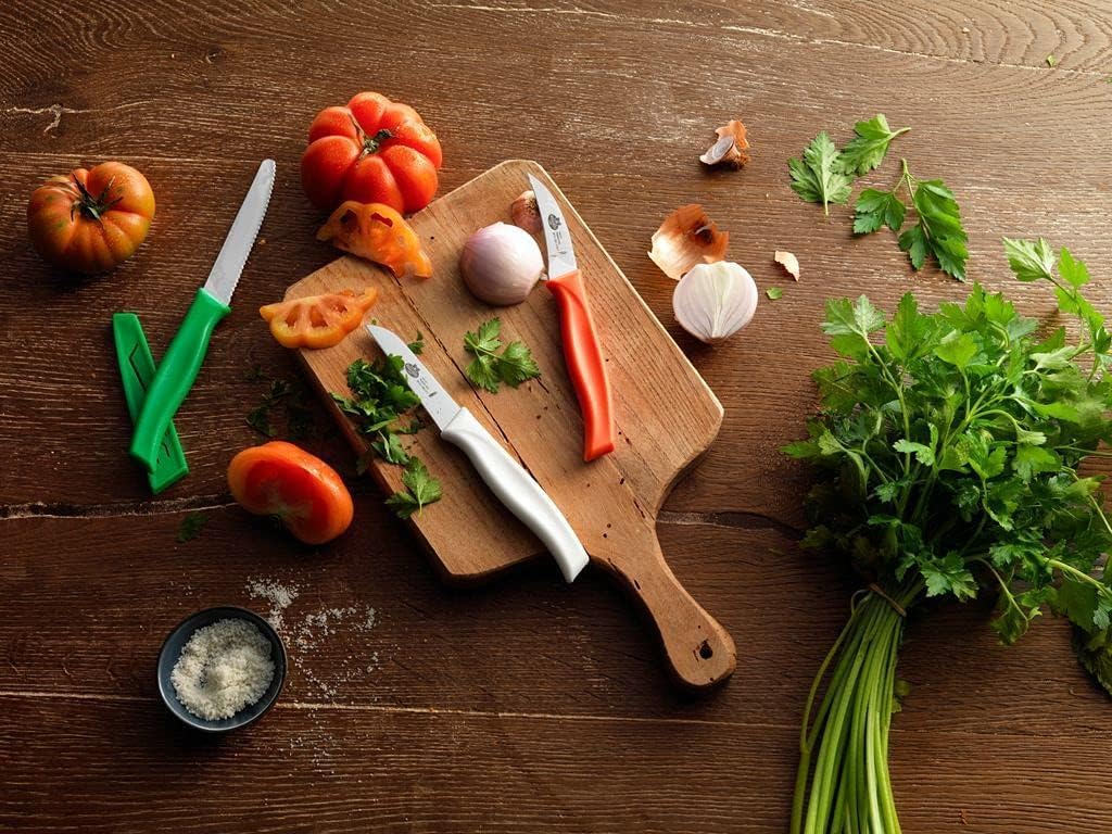 Machen Sie Ihre Küche mit dem 3-teiligen Messerset von Mincio Ballarini praktischer und farbenfroher. Jedes Messer verfügt über eine scharfe, langlebige Klinge aus Edelstahl, ideal zum Schälen, Schneiden und präzisen Zubereiten von Obst, Gemüse und kleinen Lebensmitteln.