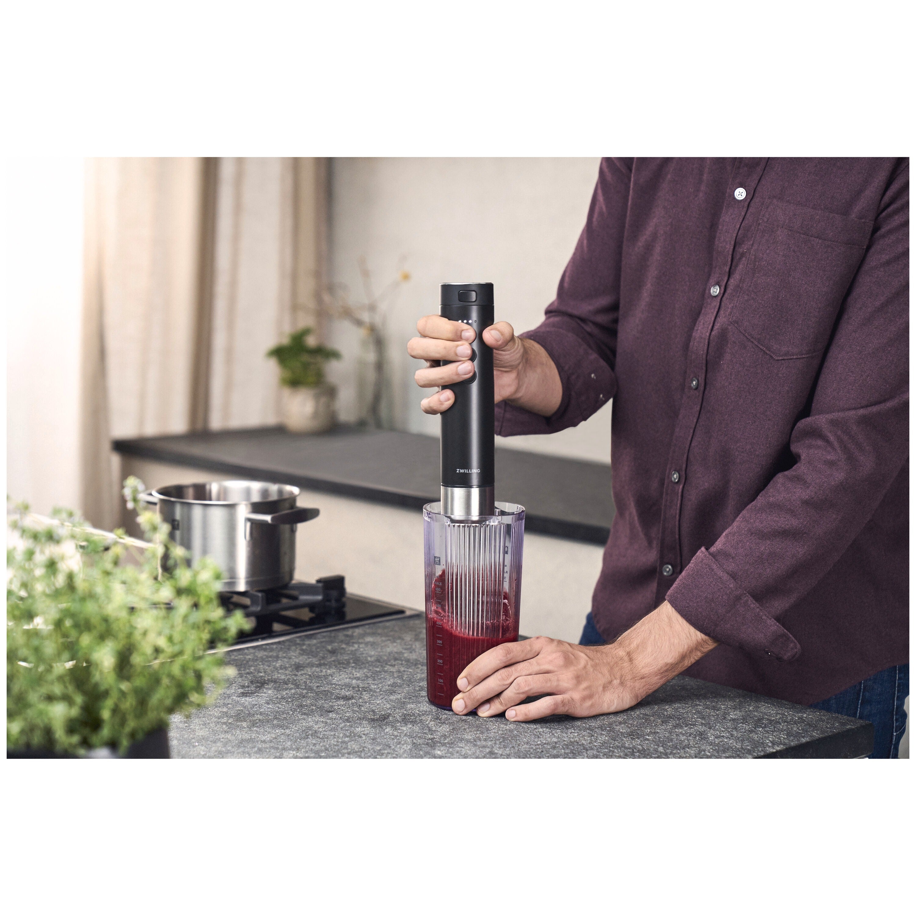 Das Zwilling Xtend Akku-Stabmixer-Starterset ist für alle gedacht, die maximale Freiheit in der Küche wünschen, ohne auf Leistung verzichten zu müssen. Dank Akku-Technologie können Sie direkt in Töpfen, Schüsseln oder Gläsern mixen, schlagen und verrühren, ohne Ihre Küche zu überladen. Der Hochleistungsmotor sorgt für schnelle, gleichmäßige Ergebnisse bei Suppen, Soßen, Smoothies und Pürees.