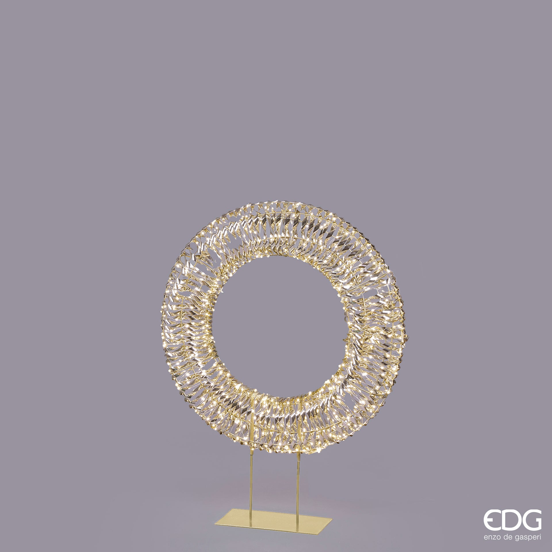 Verleihen Sie jedem Raum Eleganz und festliche Atmosphäre mit dem LED-Kranz mit Sockel von EDG Enzo De Gasperi. Diese 90 cm hohe und 70 cm breite Lichtdekoration im modernen Design ist aus hochwertigen Materialien gefertigt und mit viel Liebe zum Detail gestaltet, um eine raffinierte, zeitgenössische Optik zu erzielen. Die 720 warmen MicroLEDs sorgen für ein bezauberndes Leuchten und schaffen eine einladende, charmante Atmosphäre.