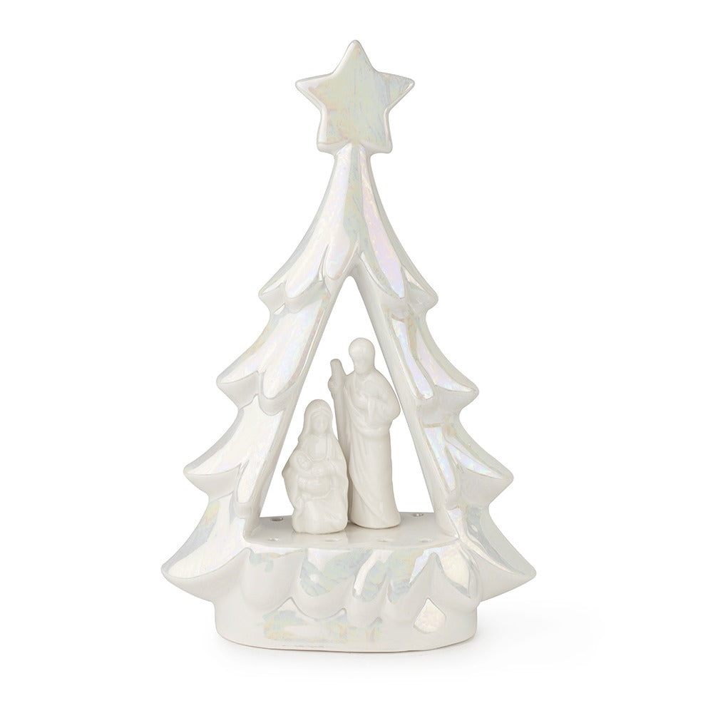 Feiern Sie die Magie von Weihnachten mit der raffinierten Hervit-Krippe aus weißem Porzellan, einem Kunstwerk mit schlichtem und raffiniertem Design. Diese elegante, 27 cm hohe Skulptur stellt die Heilige Familie mit zarten Linien und einem zeitgenössischen Stil dar, der perfekt zu jedem Dekor passt, von klassisch bis modern.