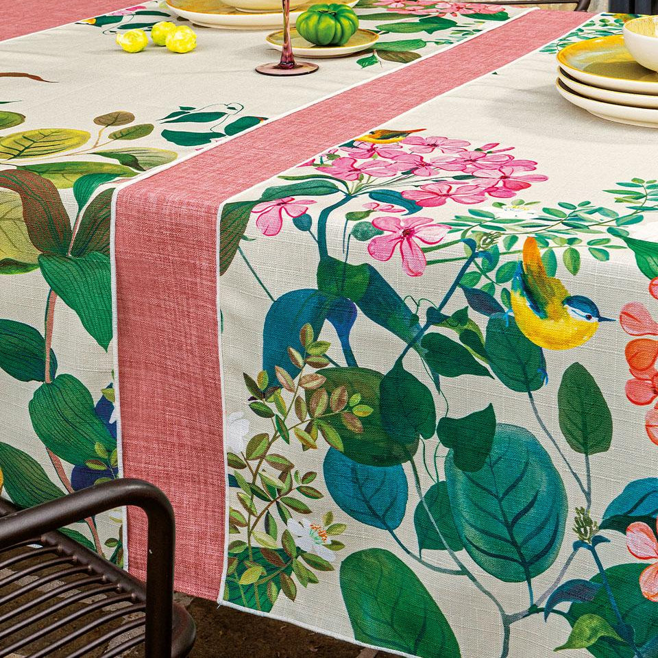 Der schmutzabweisende Tischläufer Singapore von L'Oca Nera im praktischen Format 50 x 155 cm ist das ideale Accessoire für alle, die einen eleganten und funktionalen Tisch suchen. Verziert mit einem exotischen, von der tropischen Natur inspirierten Motiv, verleiht er jedem Raum Lebendigkeit und Persönlichkeit.