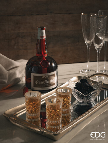 Das runde Facettenglas mit 65 ml Fassungsvermögen von EDG ist die ideale Wahl für alle, die ein Designer-Tischaccessoire suchen, das Ästhetik und Funktionalität vereint und jeden geselligen Moment noch besonderer macht.