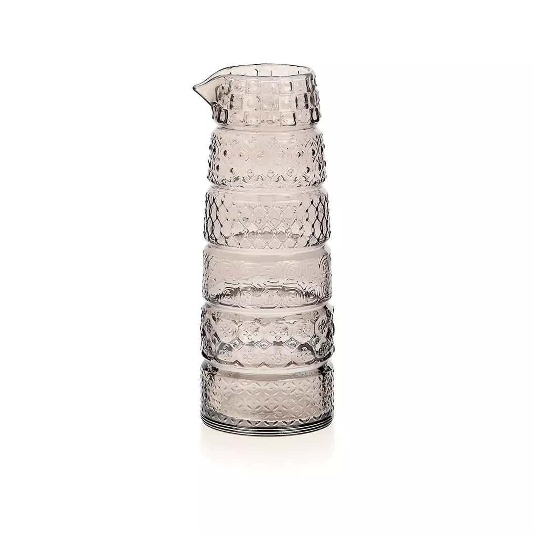 Die IVV Sixties 1-Liter-Karaffe ist ein Meisterwerk des Retro-Designs, das Eleganz und Funktionalität vereint. Gefertigt aus hochwertigem Glas in Taubengrau, fängt diese Karaffe mit ihren klaren Linien und raffinierten geometrischen Formen den Stil der 1960er-Jahre perfekt ein.