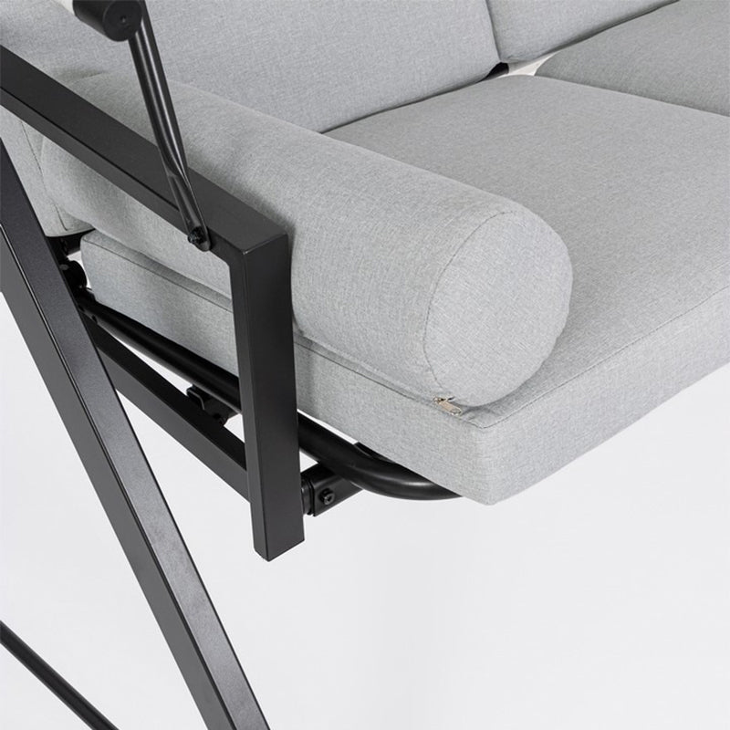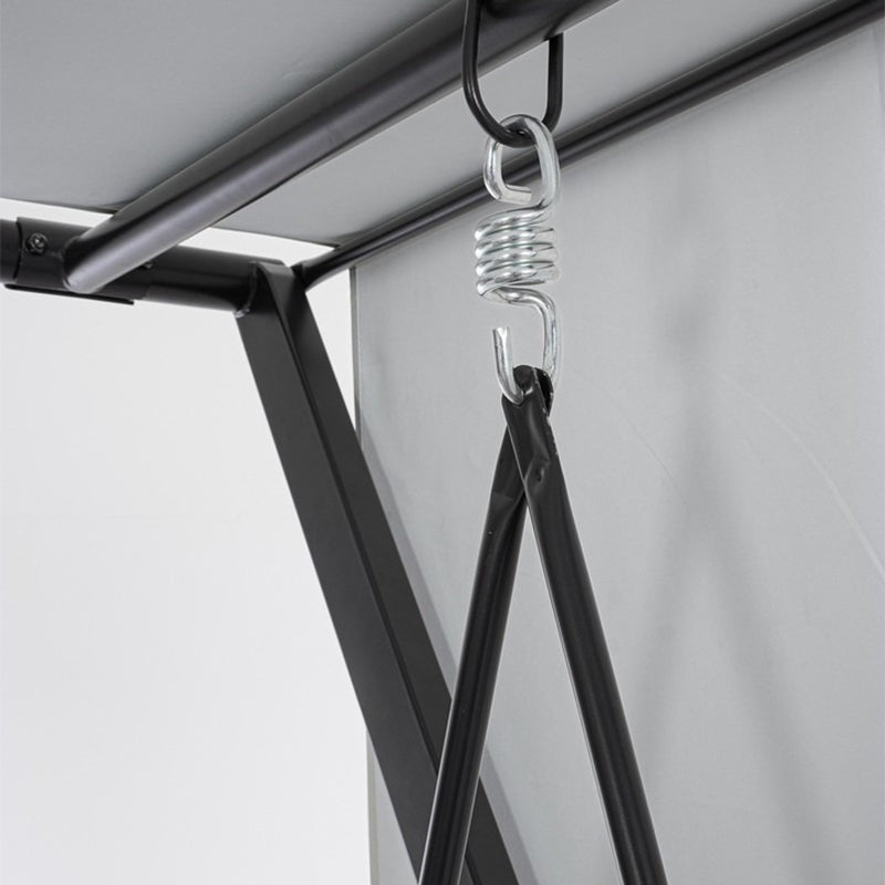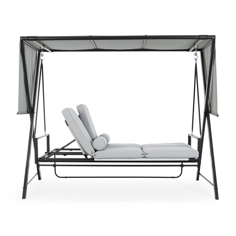 Das Sonnendach lässt sich dank eines Schiebesystems manuell verstellen und so je nach Sonneneinstrahlung frei positionieren. Die Sitzfläche aus strapazierfähigem 220 g/m² Polyester ist mit bequemen, nicht abnehmbaren Kissen aus 200 g/m² Spun Poly-Gewebe ausgestattet. Die Schaukel zeichnet sich durch ihre Fähigkeit aus, sich dank der klappbaren Rückenlehne in ein vollwertiges 180 x 115 cm großes Bett zu verwandeln und bietet so eine Doppelfunktion als Sitz und Liege.