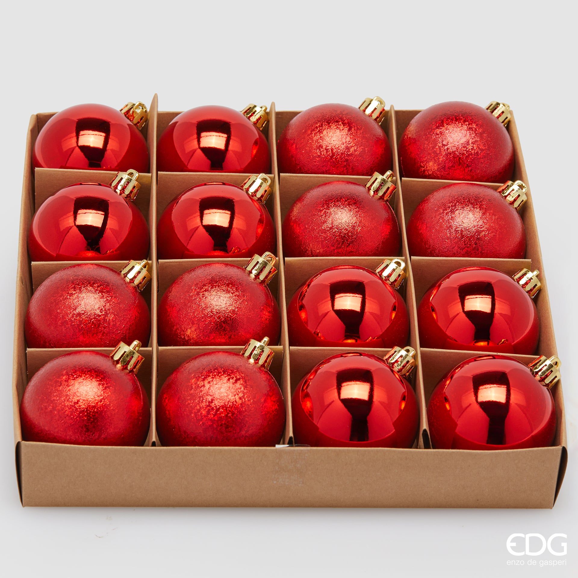 EDG Enzo De Gasperi Schachtel mit 16 roten Weihnachtskugeln, 6 cm hoch