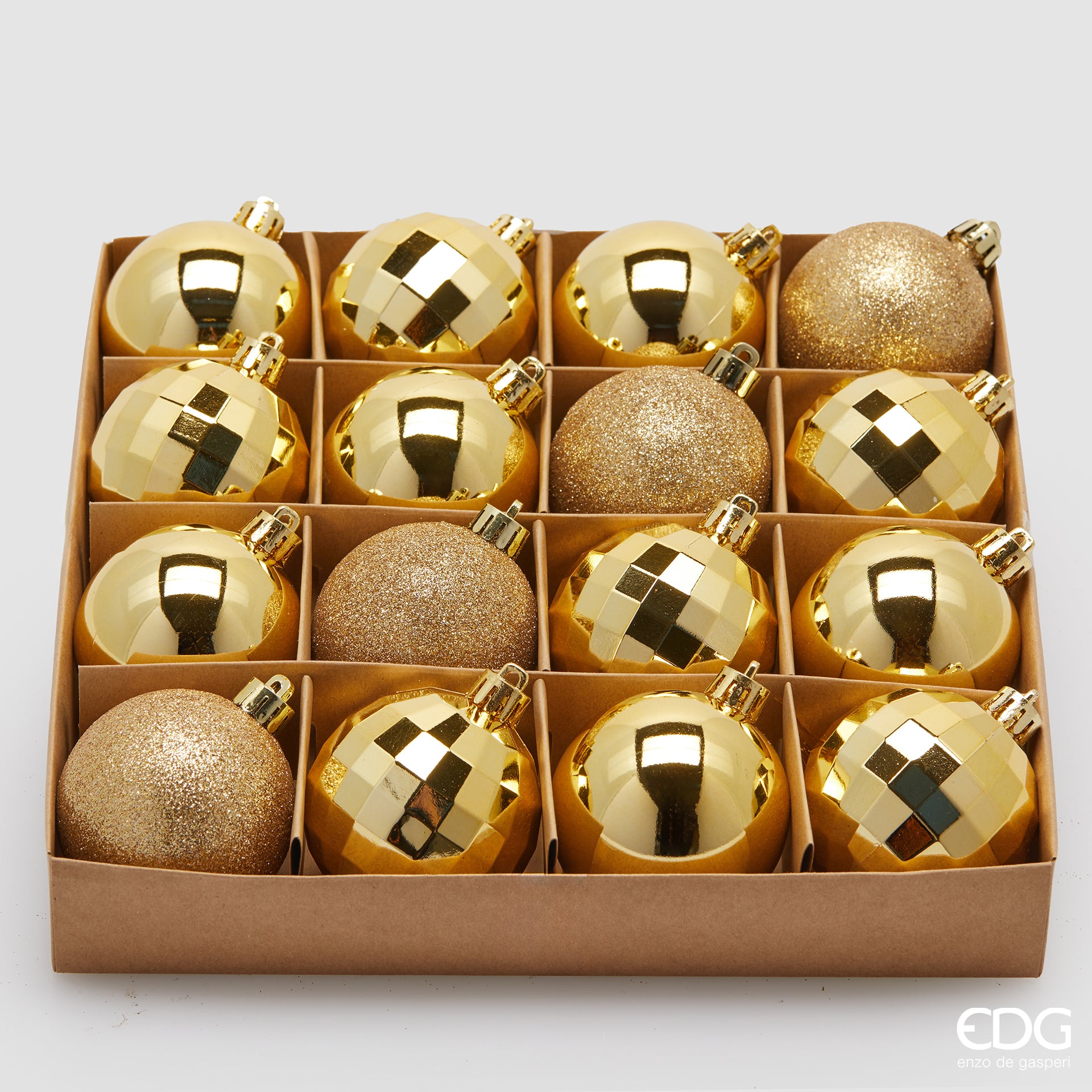EDG Enzo De Gasperi Set mit 16 Weihnachtskugeln Mirrormix Gold D6 cm