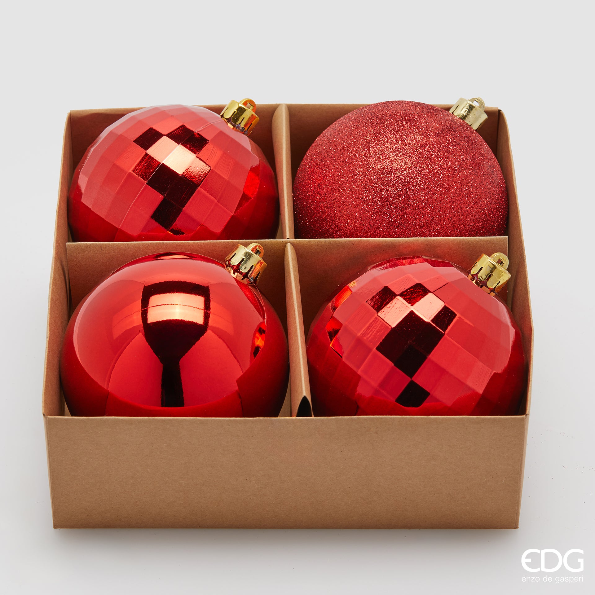 EDG Enzo De Gasperi Set mit 4 Weihnachtskugeln Mirrormix Rot D10 cm
