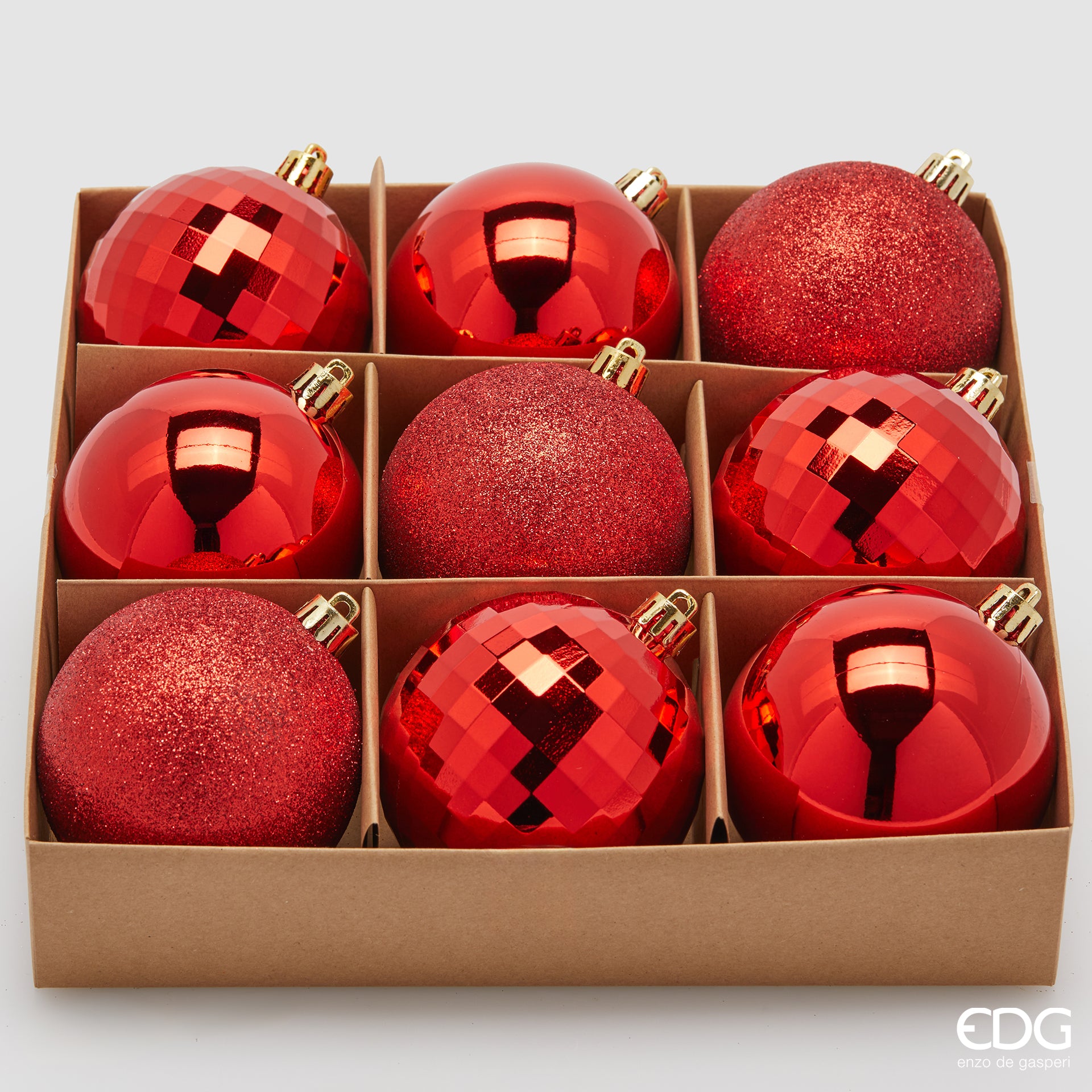 EDG Enzo De Gasperi Set mit 9 Weihnachtskugeln Mirrormix Rot D8 cm