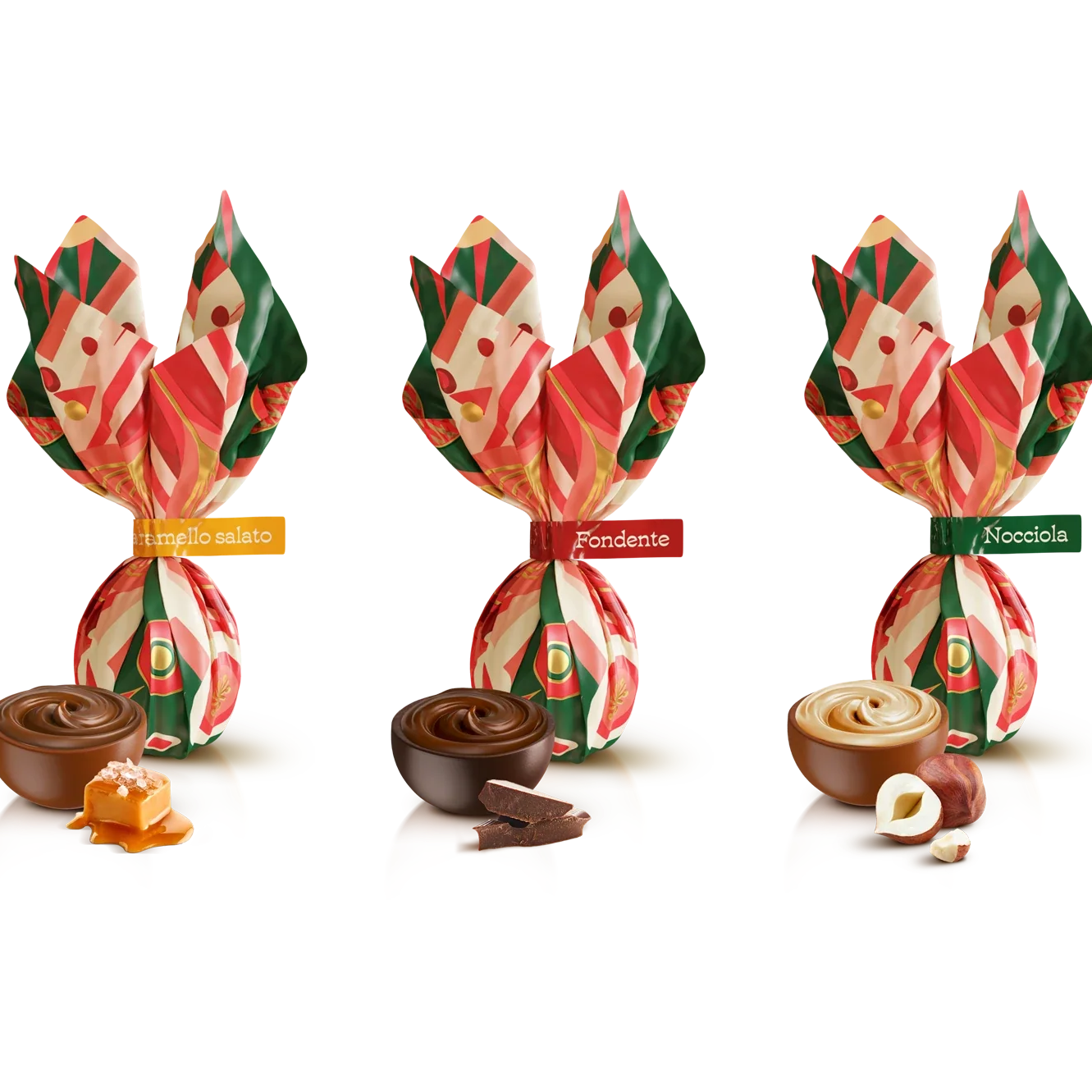 Geschmacksrichtungen: Haselnuss, gesalzenes Karamell, Zartbitterschokolade