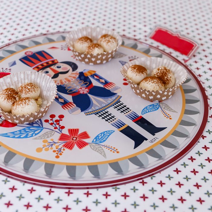 Verfügbar in drei grafische Varianten : Nussknacker Baum Und Kleines Haus , diese Tortenplatte passt perfekt zum Ganzen Die Weihnachtskollektion Vesta bereichert die Tischdekoration mit einer originellen und festlichen Note.