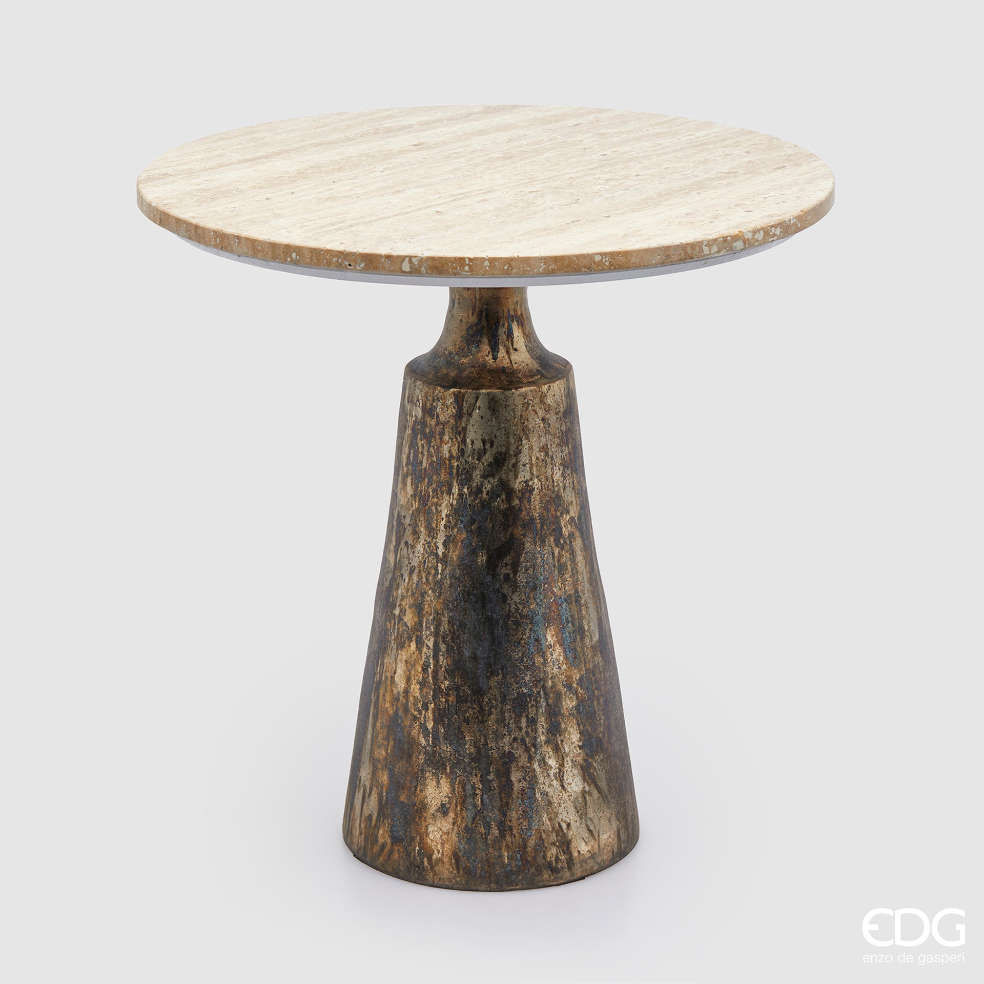 Der runde Travertintisch von EDG (60 cm Durchmesser) ist ein eleganter Couchtisch mit natürlichem und edlem Charakter, der Wohnräume und modernes Design stilvoll aufwertet. Entworfen von der renommierten italienischen Möbel- und Wohnaccessoiresmarke, vereint dieser Tisch mit seiner Tischplatte in Travertinoptik raffinierte Ästhetik mit funktionaler Vielseitigkeit und eignet sich daher perfekt als Couchtisch, Beistelltisch oder als eindrucksvolles Akzentstück für Innen- und Außenbereiche.
